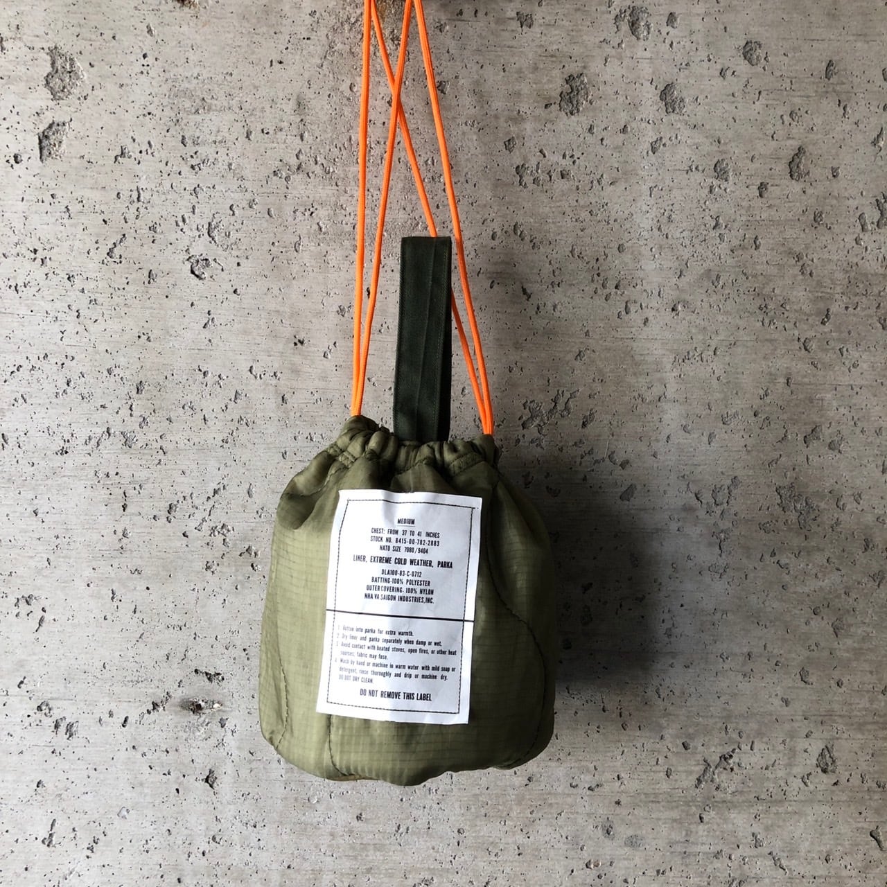 【HB1015】 ミリタリー ライナーリメイクペイシェントバッグ 巾着