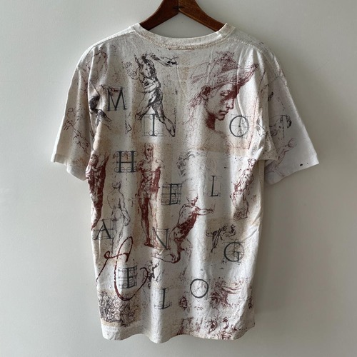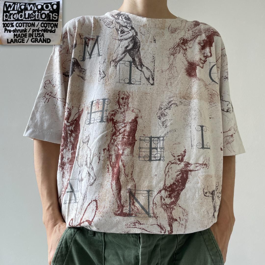 tGG96 90s レオナルドダヴィンチ アート Tシャツ 総柄 マルチプリント