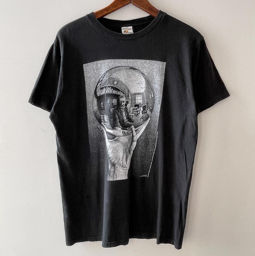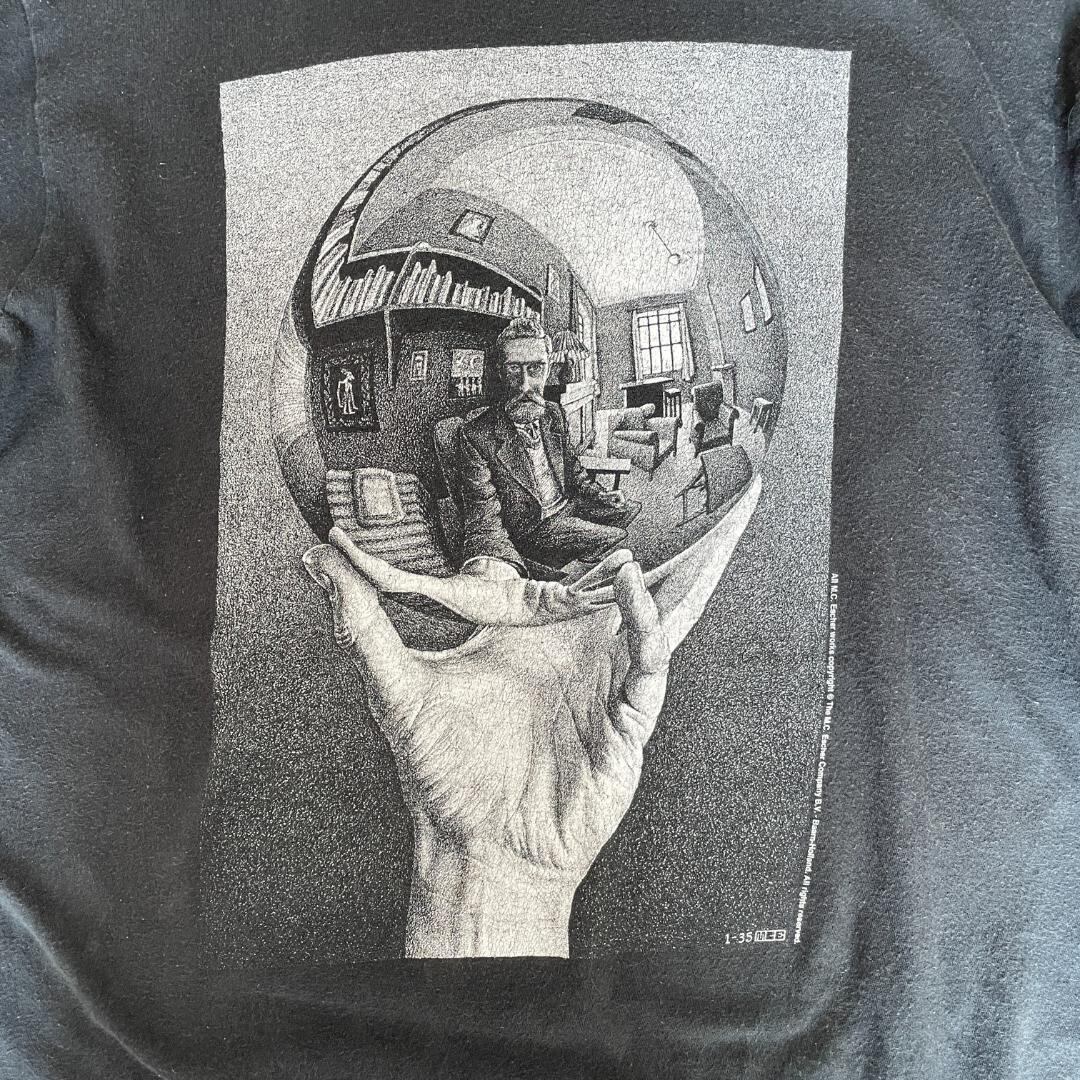 tGG272 90s Tシャツ MCエッシャー アート 写像球体を持つ手