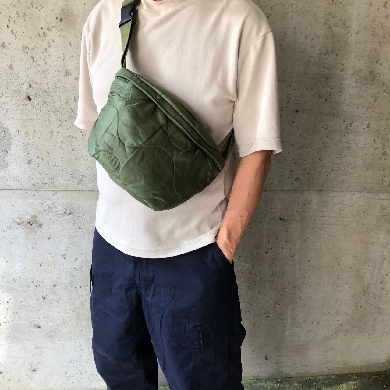 アメリカ軍のミリタリー素材(キルトライナー、コットンファティーグ)素材を使用したリメイクのペーシェントバッグポーチ