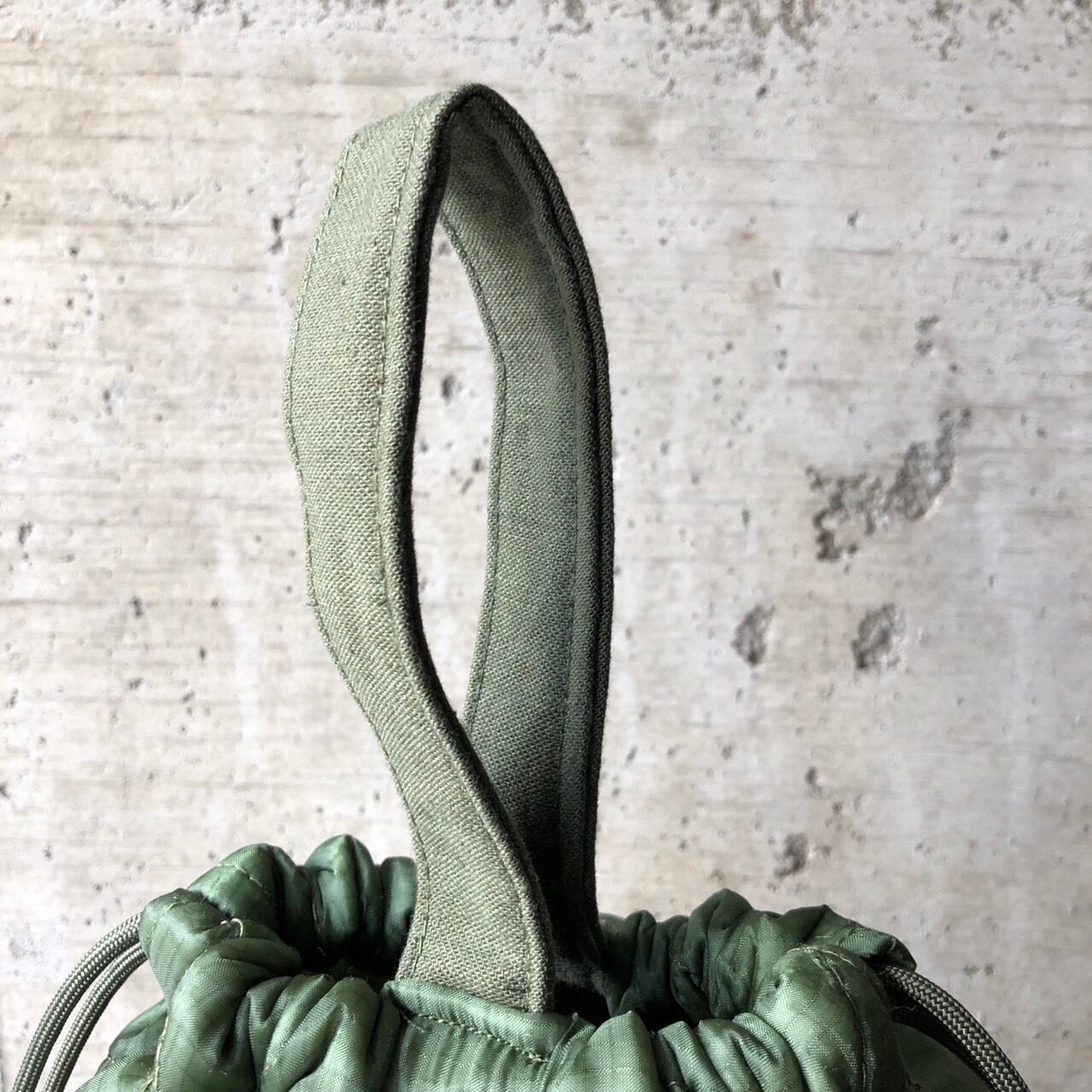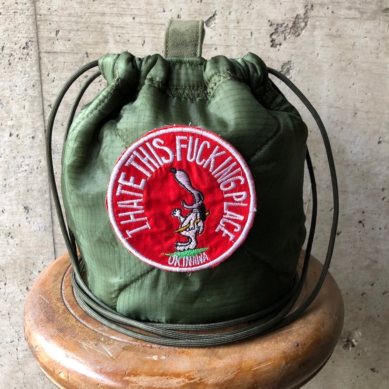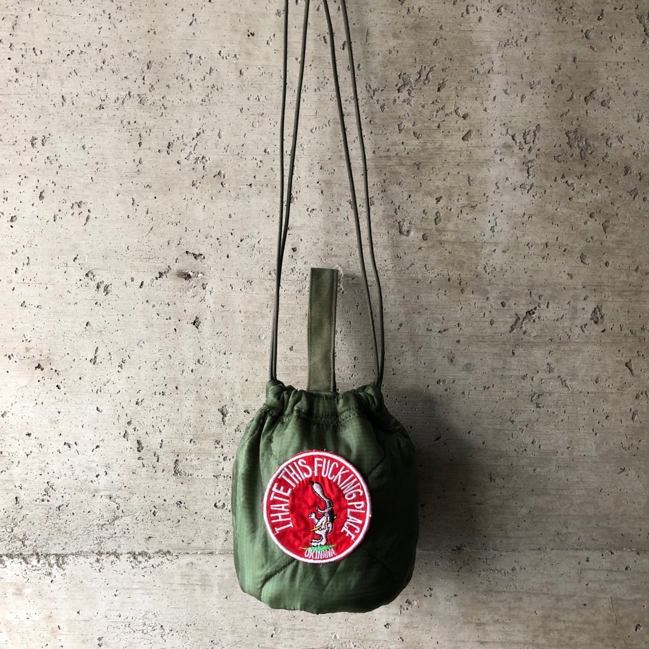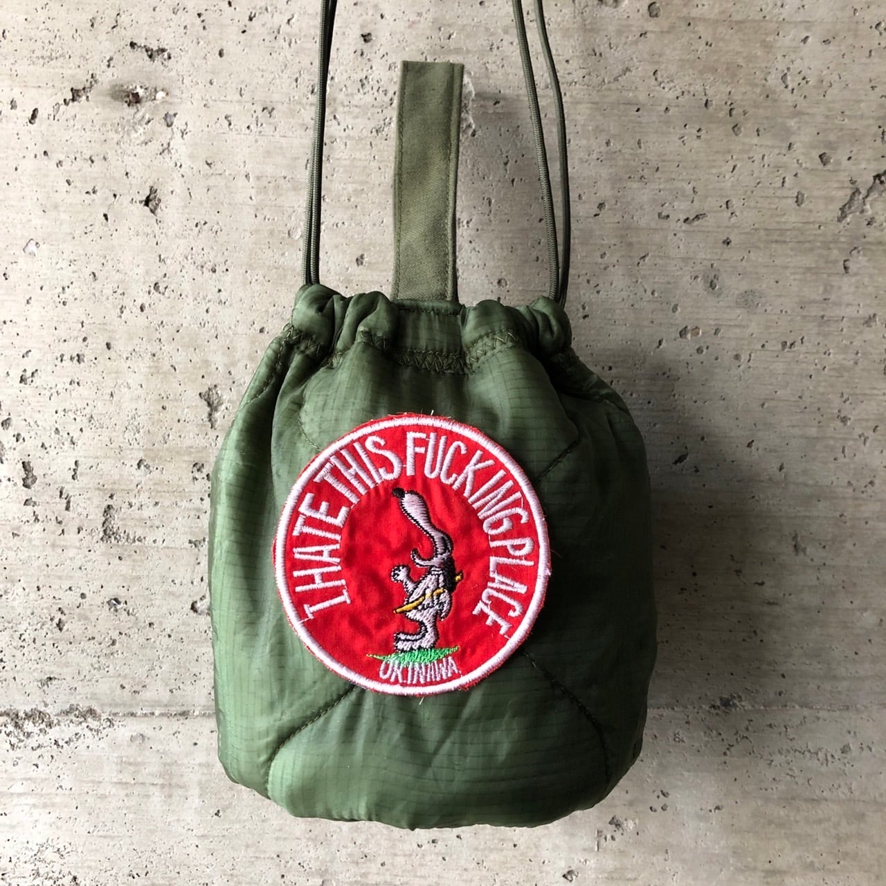 【HB1054】 ショルダー ミリタリー USA ライナーリメイク ペイシェントバッグ 巾着