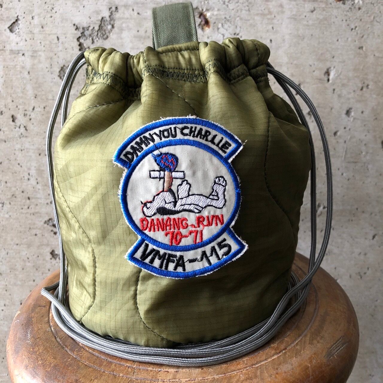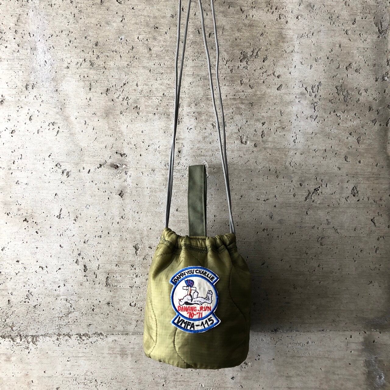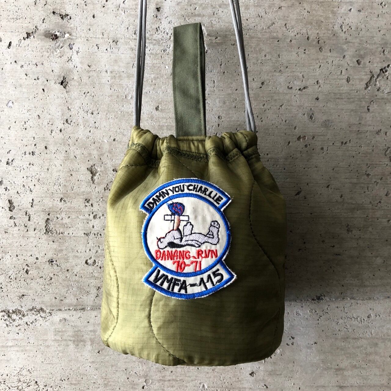 【HB1083】 ショルダー ミリタリー USA ライナーリメイク ペイシェントバッグ 巾着
