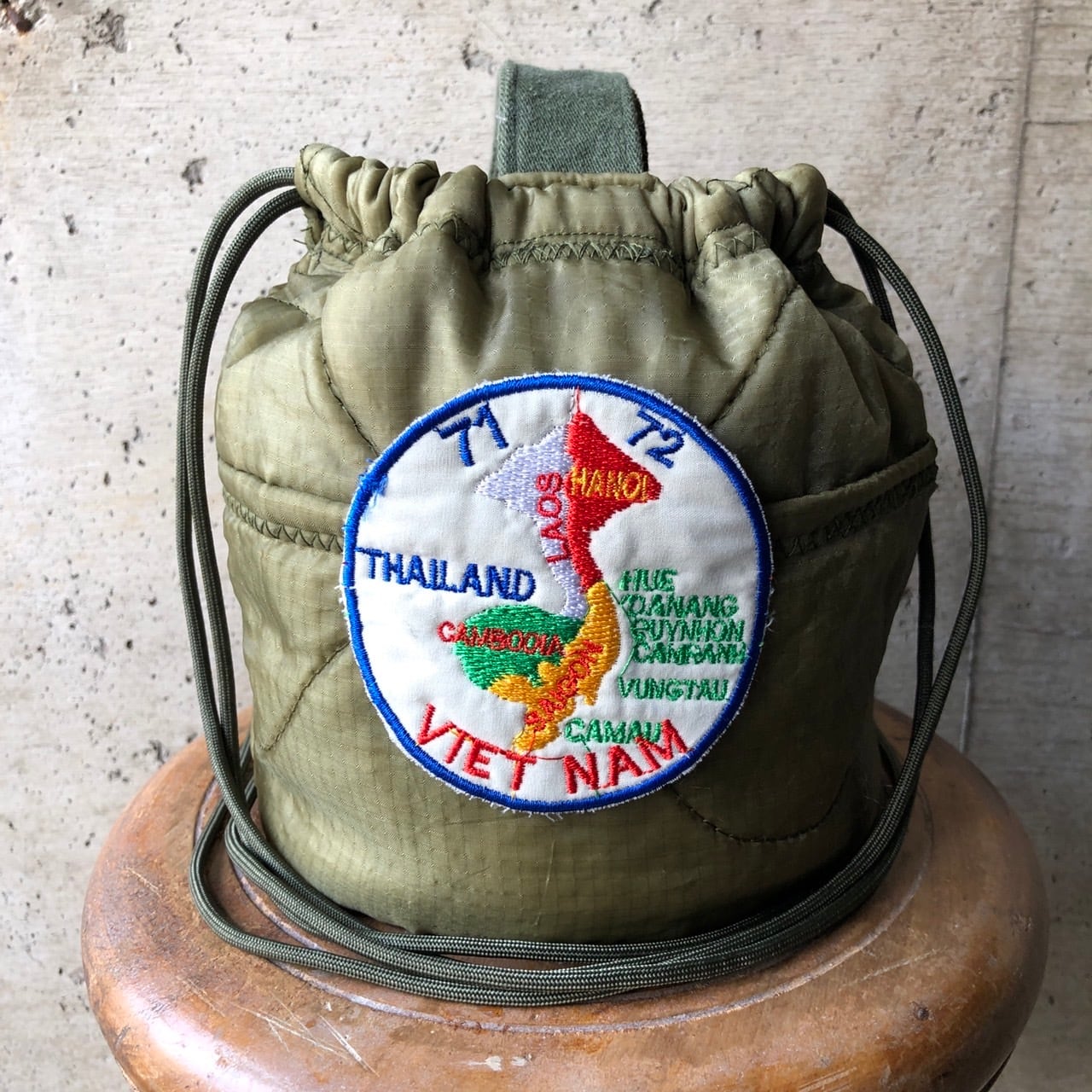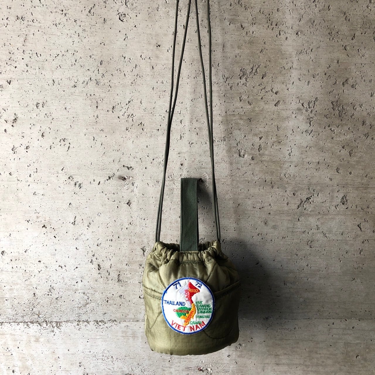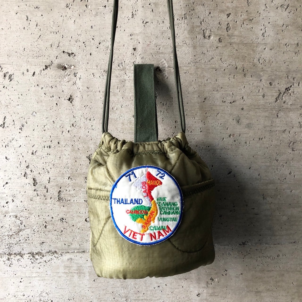 【HB1037】 ショルダー ミリタリー USA ライナーリメイク ペイシェントバッグ 巾着