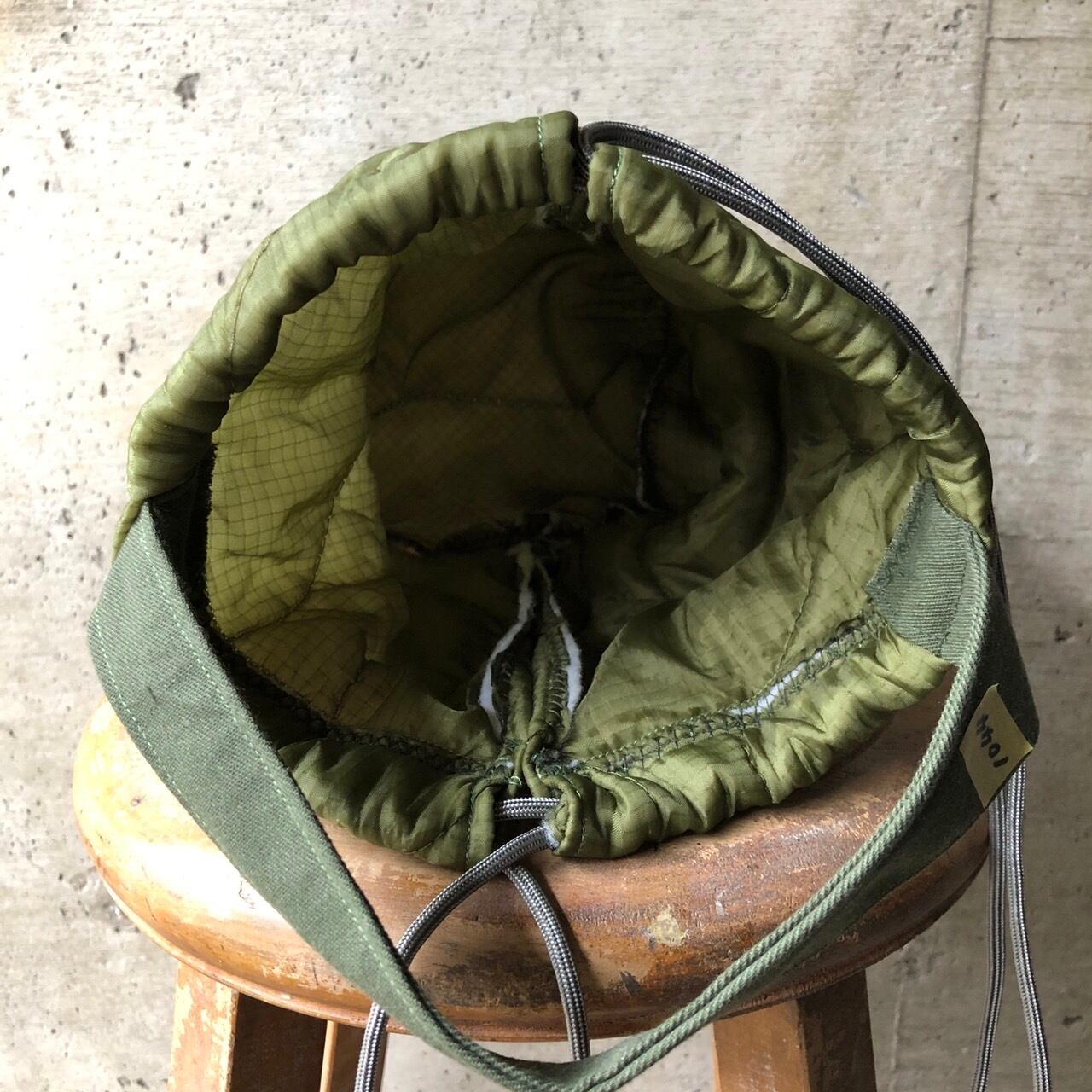 【HB1044】 ショルダー ミリタリー USA ライナーリメイク ペイシェントバッグ 巾着