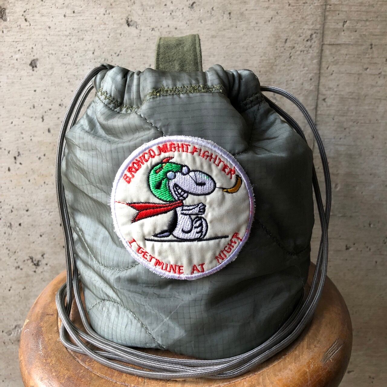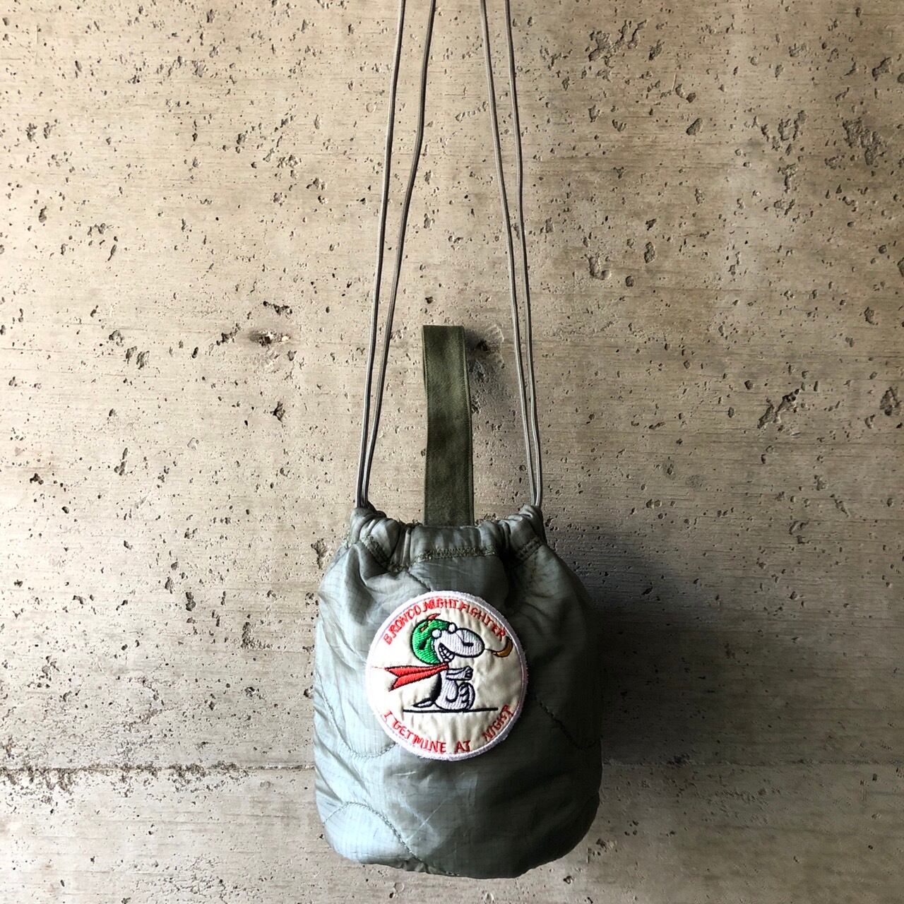 【HB1048】 ショルダー ミリタリー USA ライナーリメイク ペイシェントバッグ 巾着