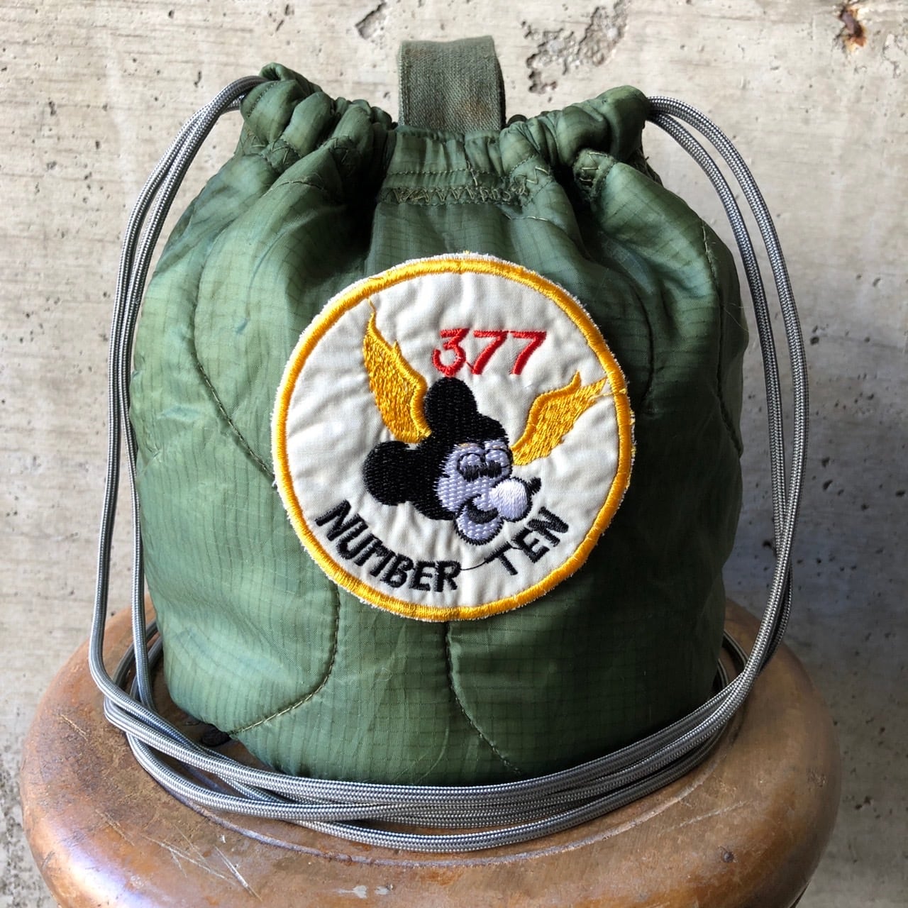 【HB1053】 ショルダー ミリタリー USA ライナーリメイク ペイシェントバッグ 巾着