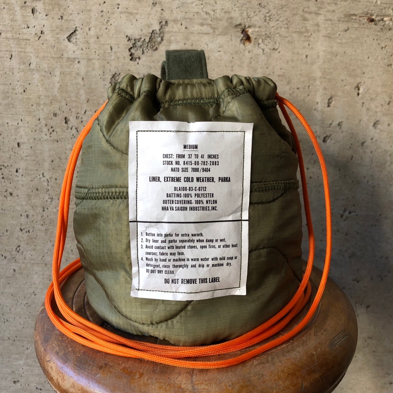 アメリカ軍のミリタリー素材(キルトライナー、コットンファティーグ)素材を使用したリメイクのペーシェントバッグポーチ
