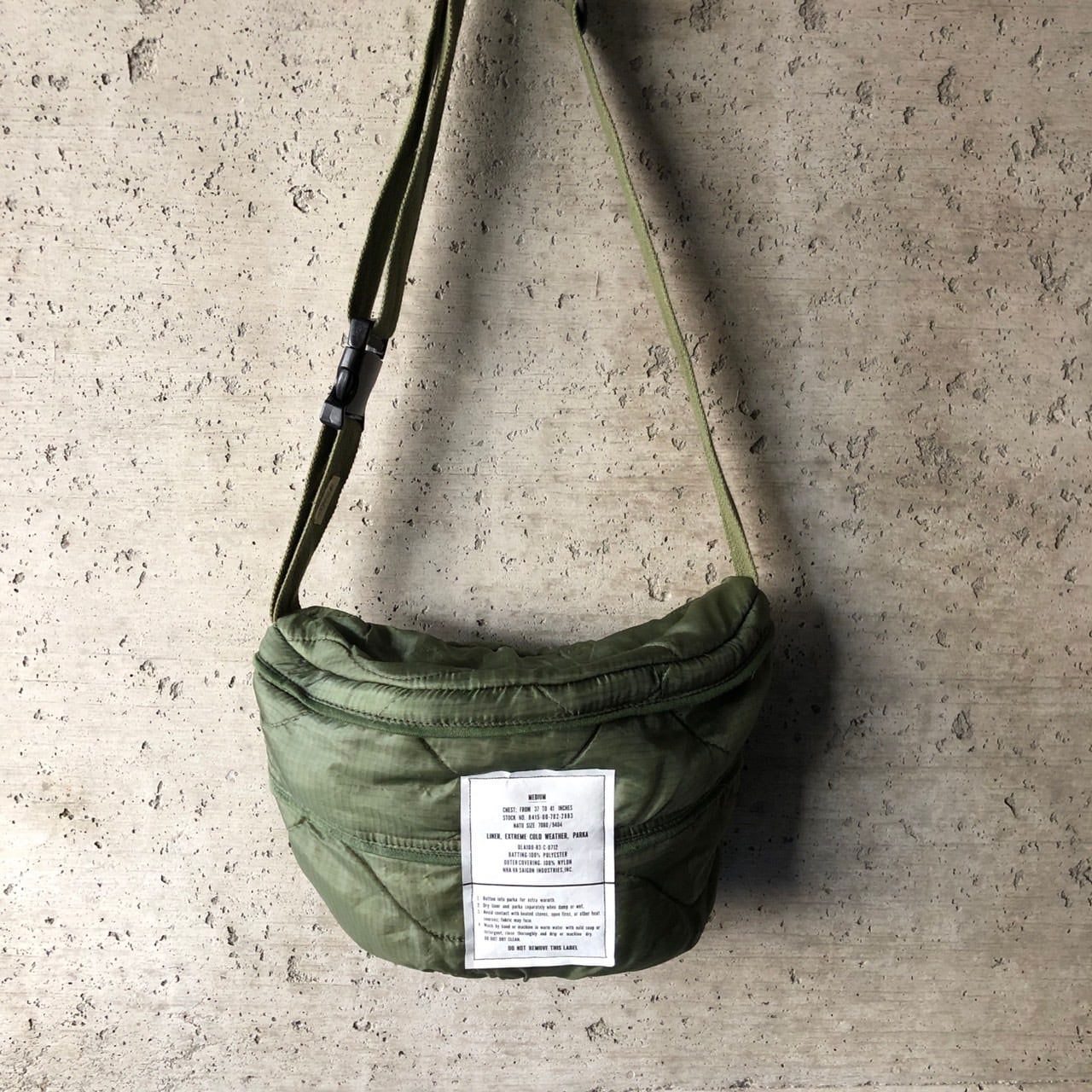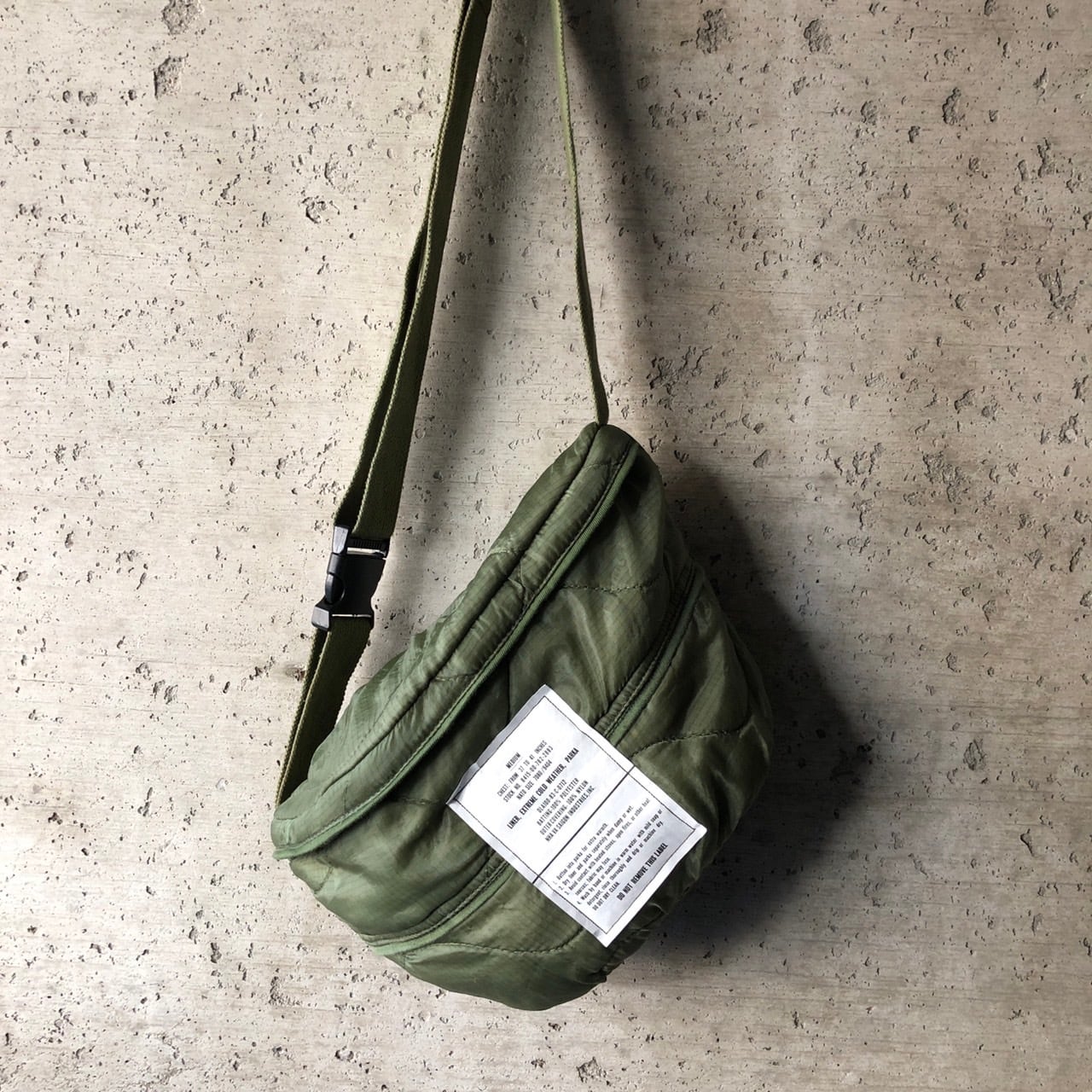 アメリカ軍のミリタリー素材(キルトライナー、コットンファティーグ)素材を使用したリメイクのペーシェントバッグポーチ