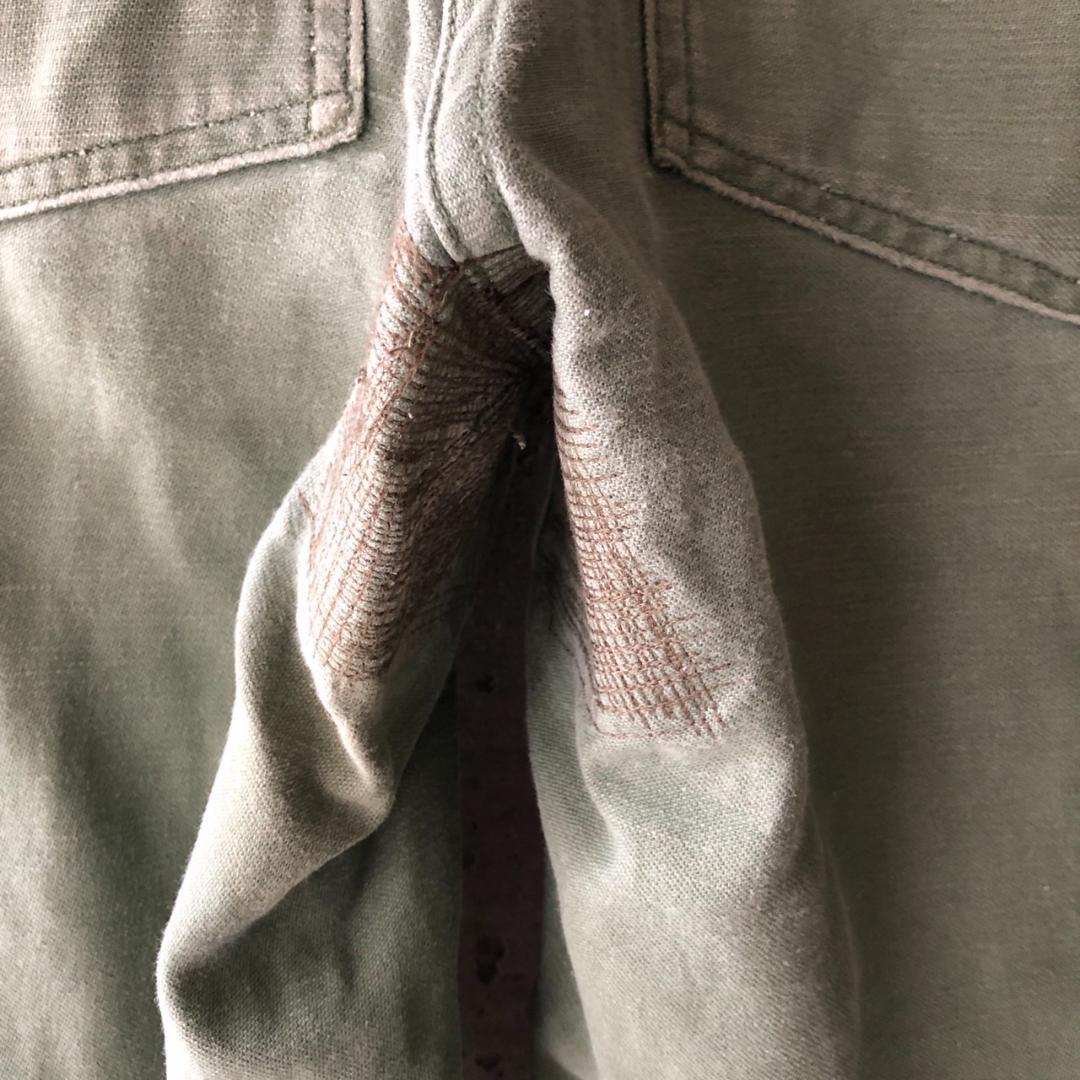 お尻部縫製修理済、前ポケット右下付近汚れあり。後ろポケット右フラップ部に汚れあり。各箇所 フェード、汚れ、シミ、破れ、小傷などあり(写真で確認ください)
