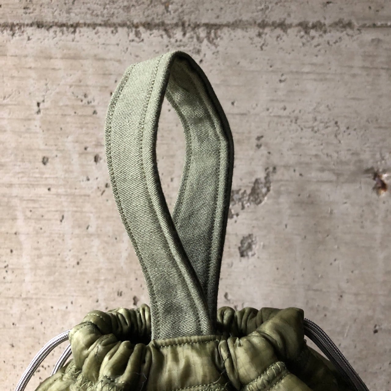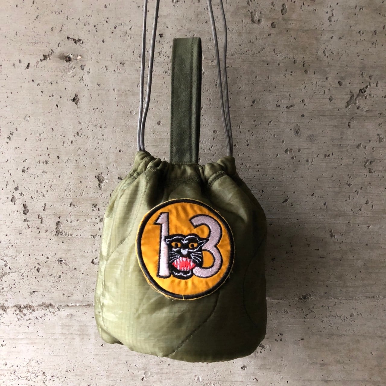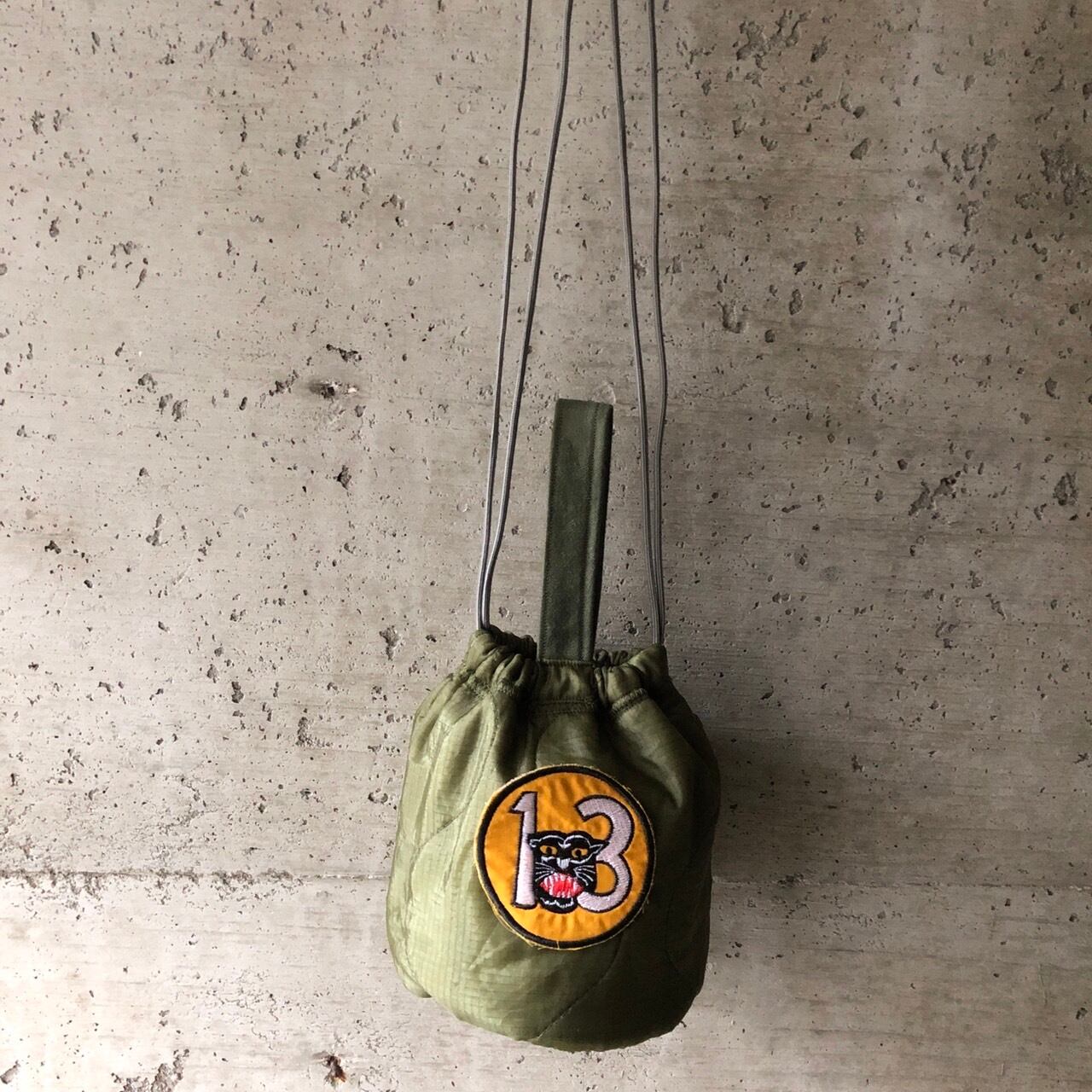 【HB1067】 ショルダー ミリタリー USA ライナーリメイク ペイシェントバッグ 巾着