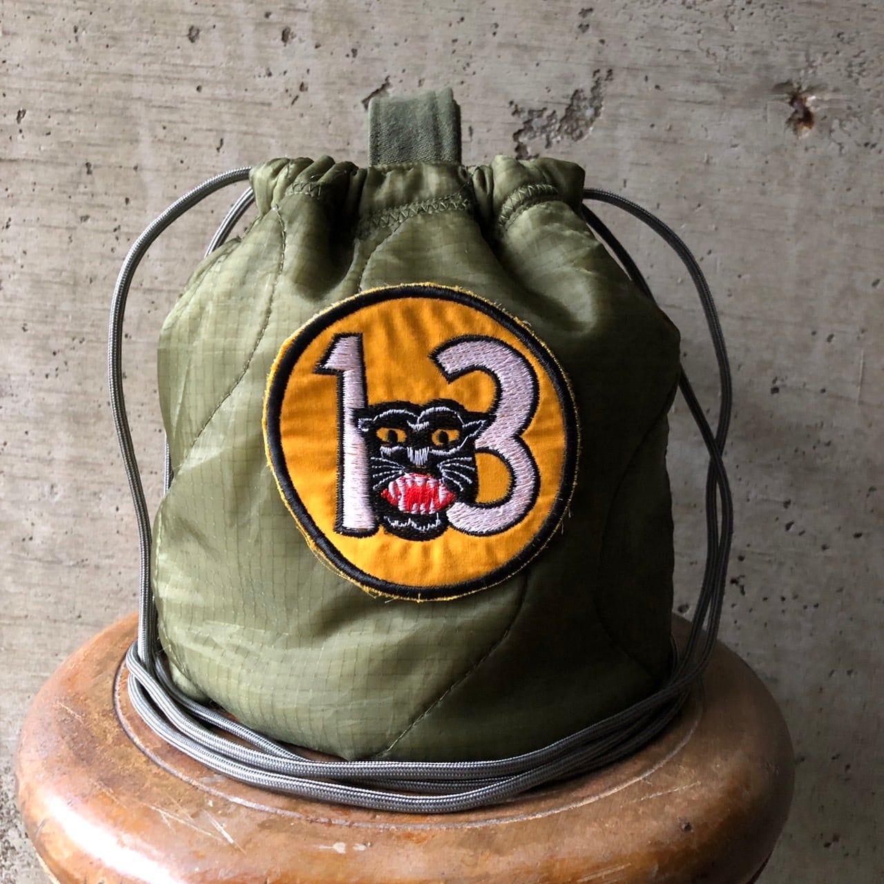 アメリカ軍のミリタリー素材(キルトライナー、コットンファティーグ)素材を使用したリメイクのペーシェントバッグポーチ