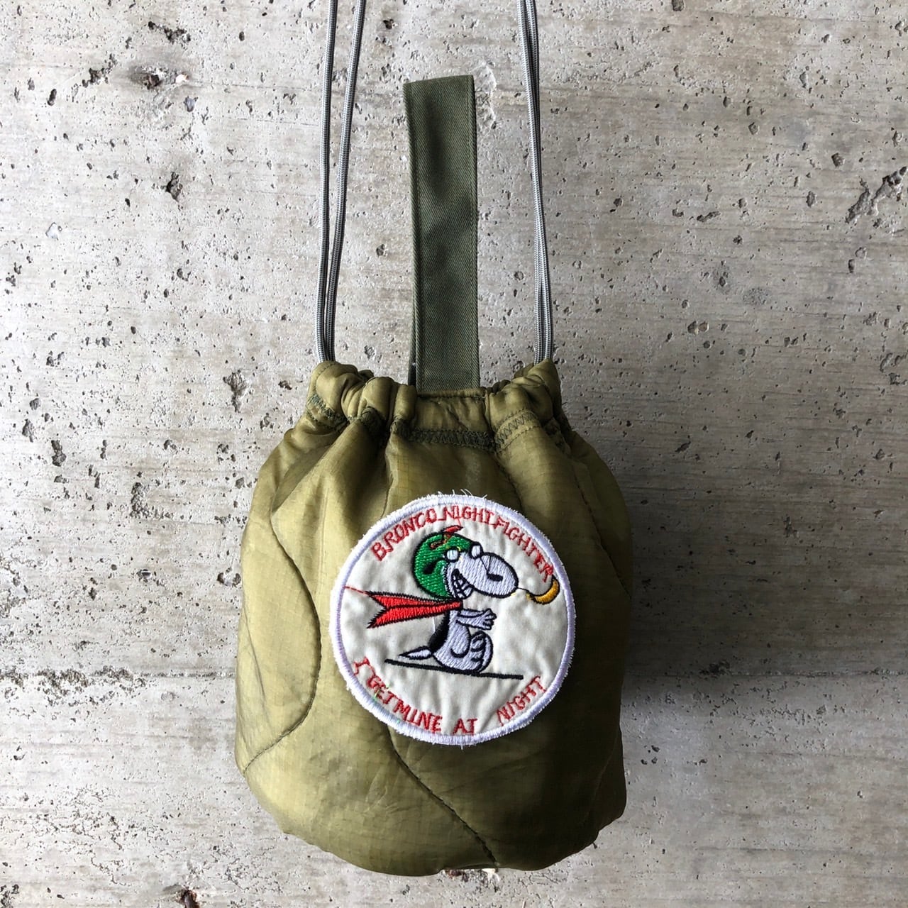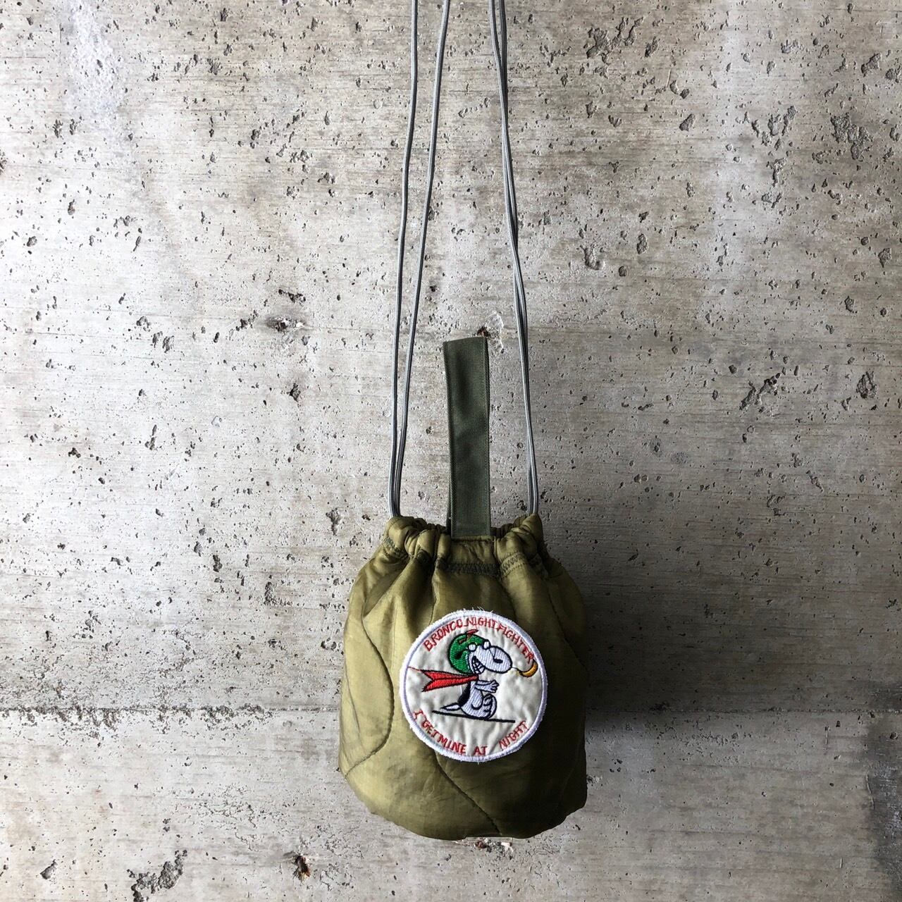 【HB1078】 ショルダー ミリタリー USA ライナーリメイク ペイシェントバッグ 巾着