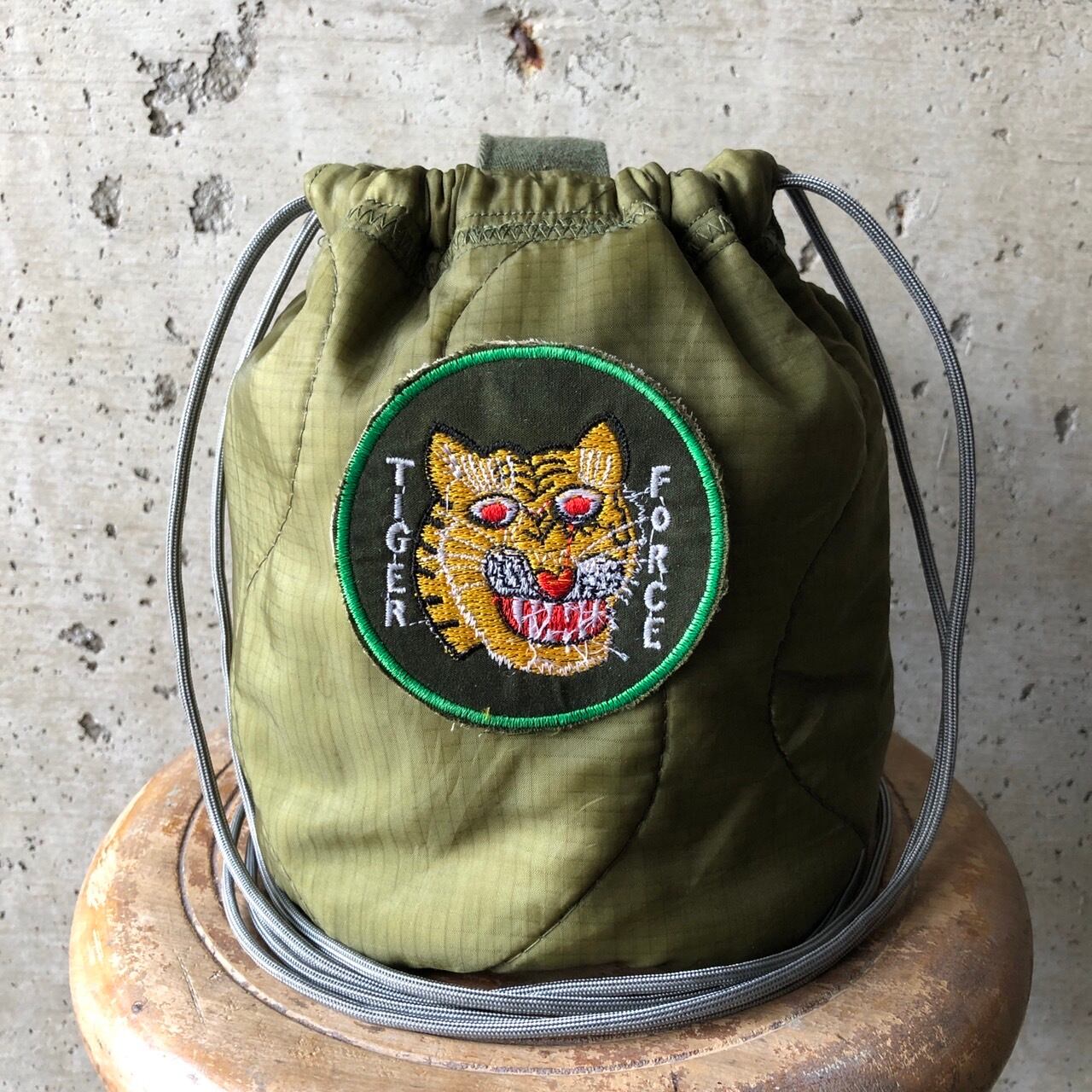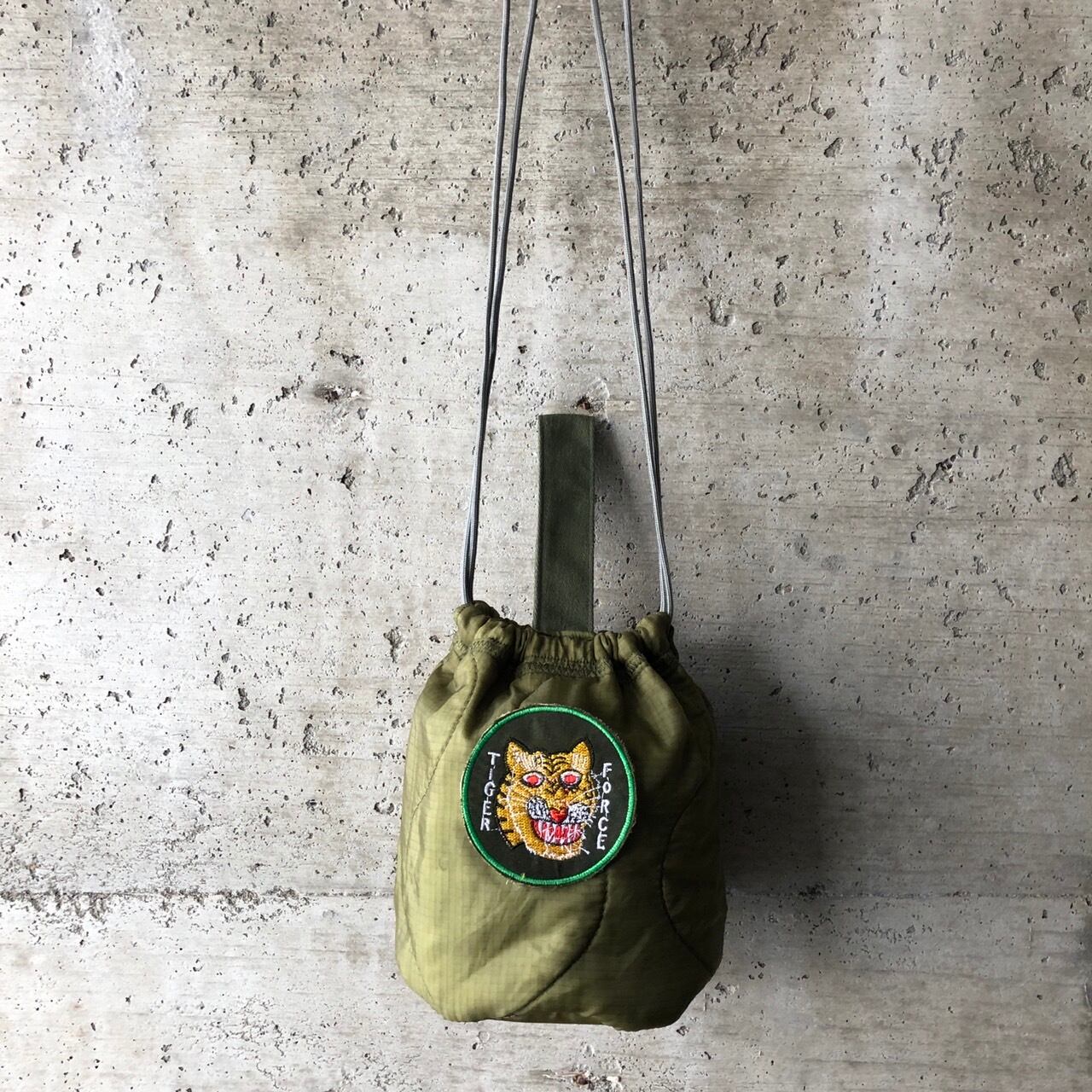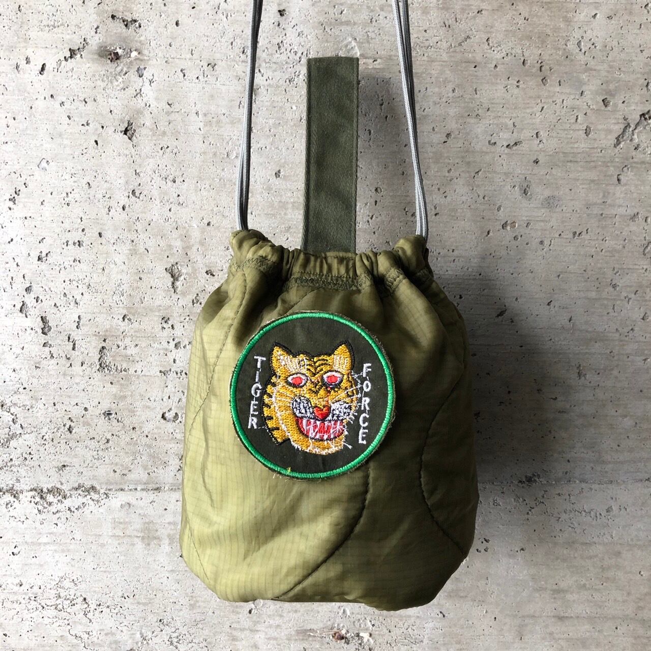 【HB1075】 ショルダー ミリタリー USA ライナーリメイク ペイシェントバッグ 巾着