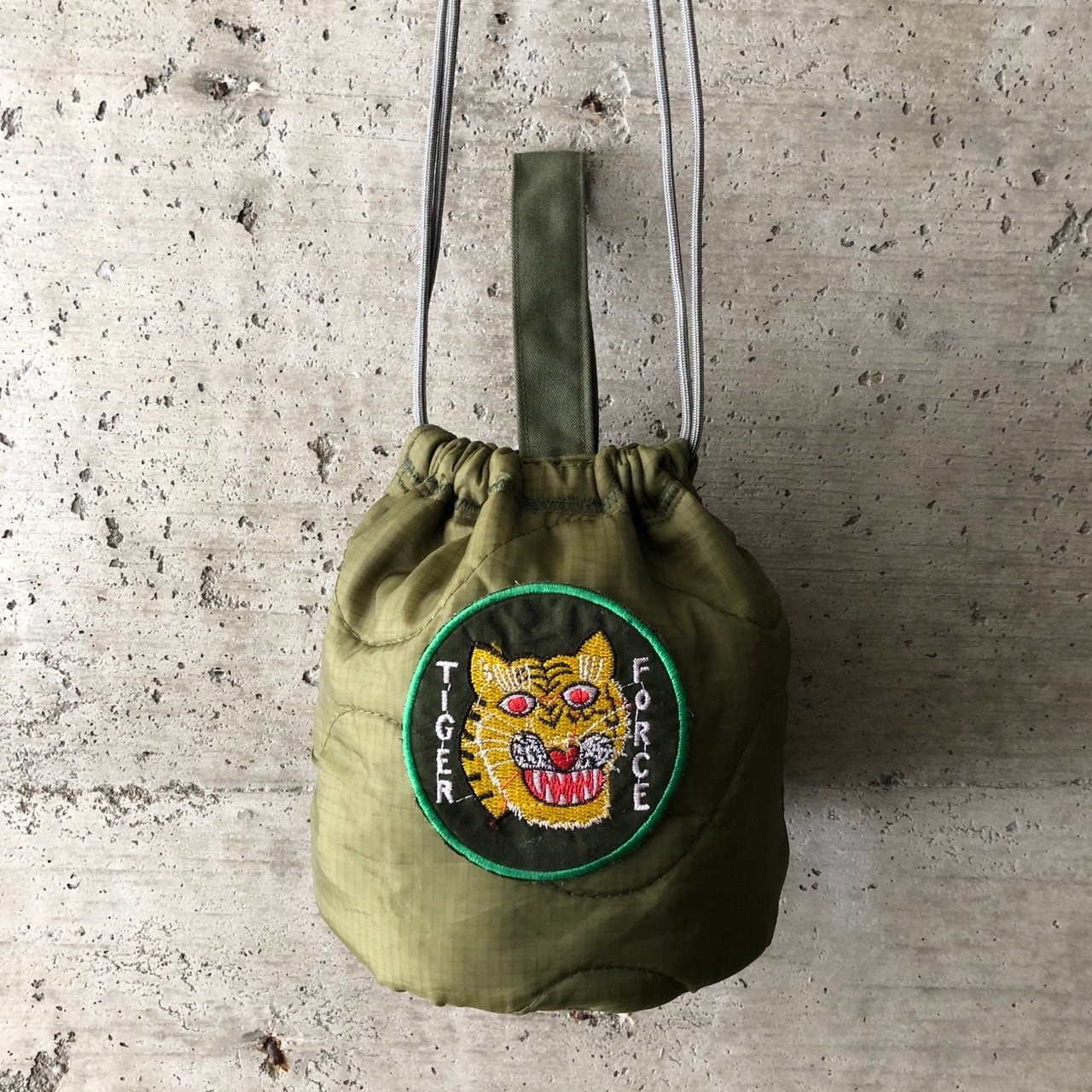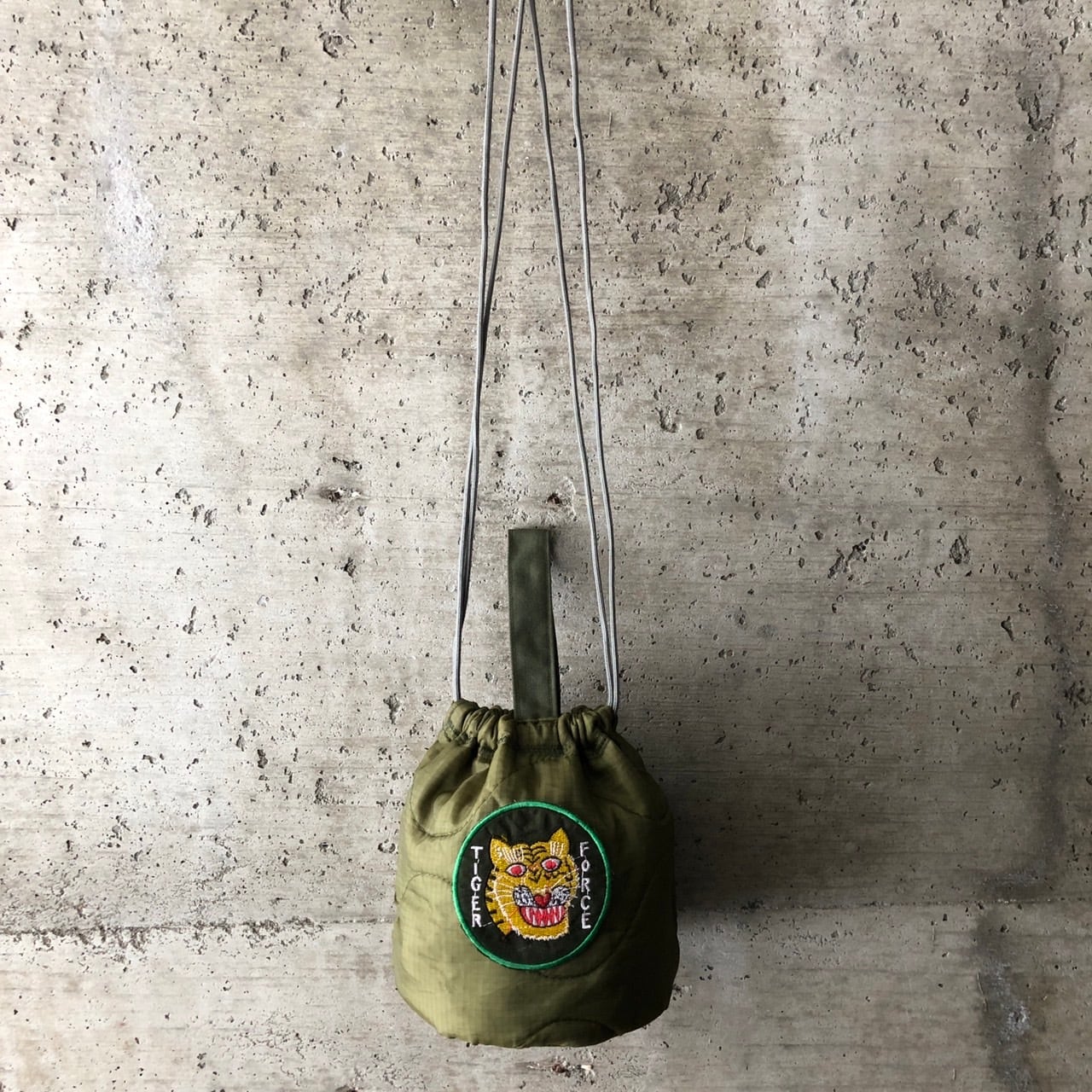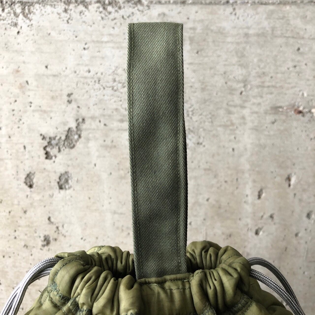 【HB1077】 ショルダー ミリタリー USA ライナーリメイク ペイシェントバッグ 巾着