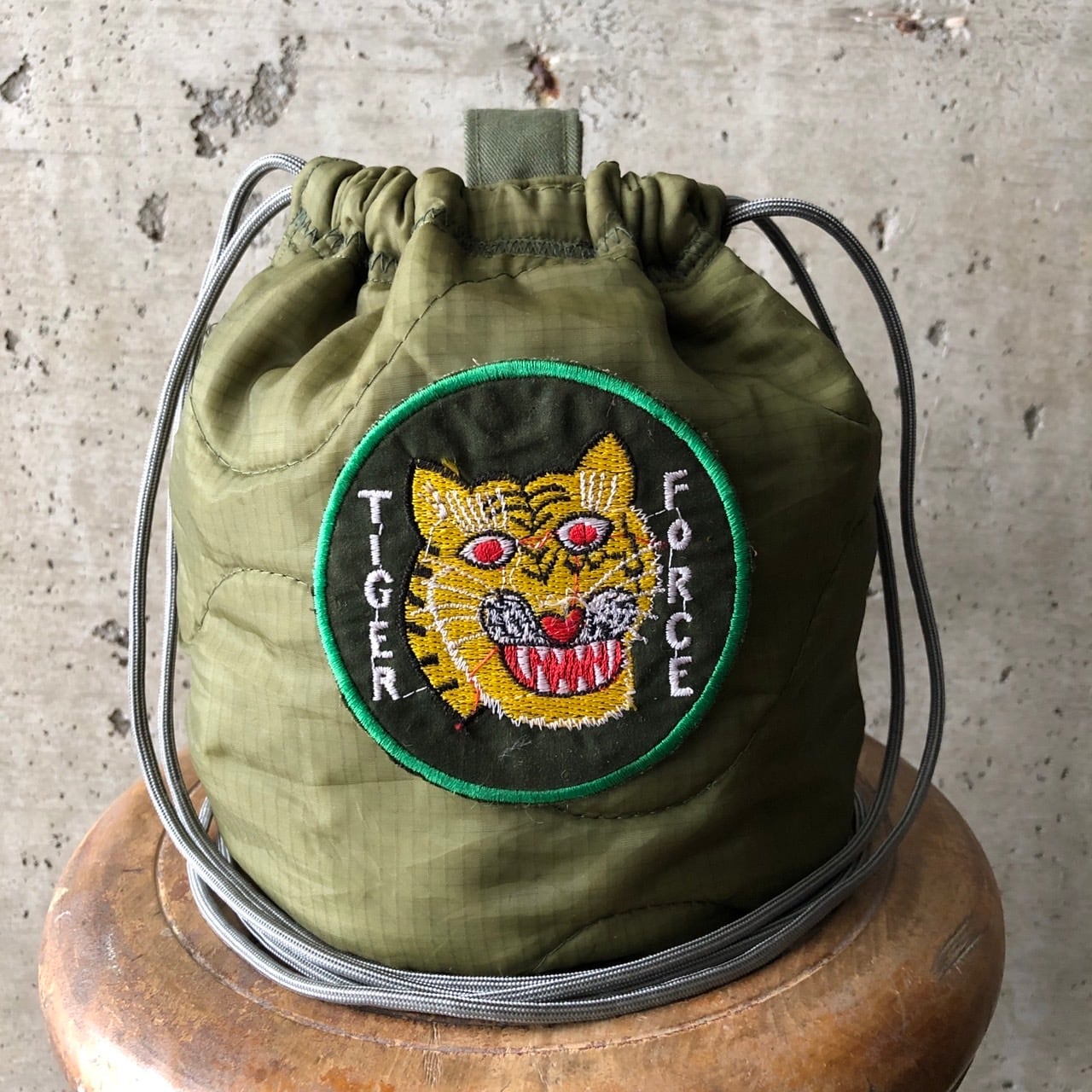 アメリカ軍のミリタリー素材(キルトライナー、コットンファティーグ)素材を使用したリメイクのペーシェントバッグポーチ