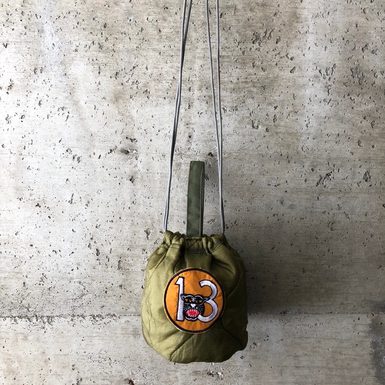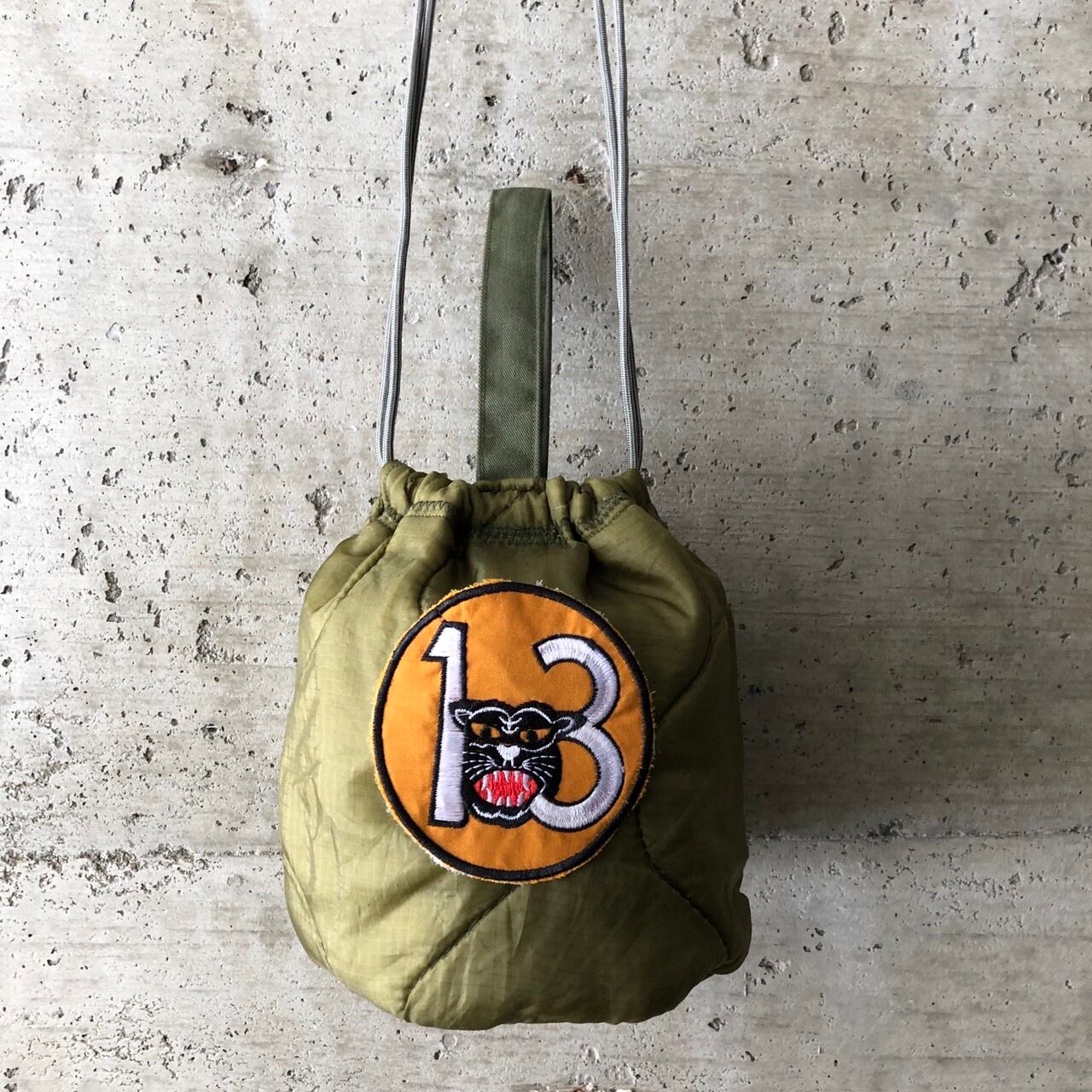 【HB1084】 ショルダー ミリタリー USA ライナーリメイク ペイシェントバッグ 巾着