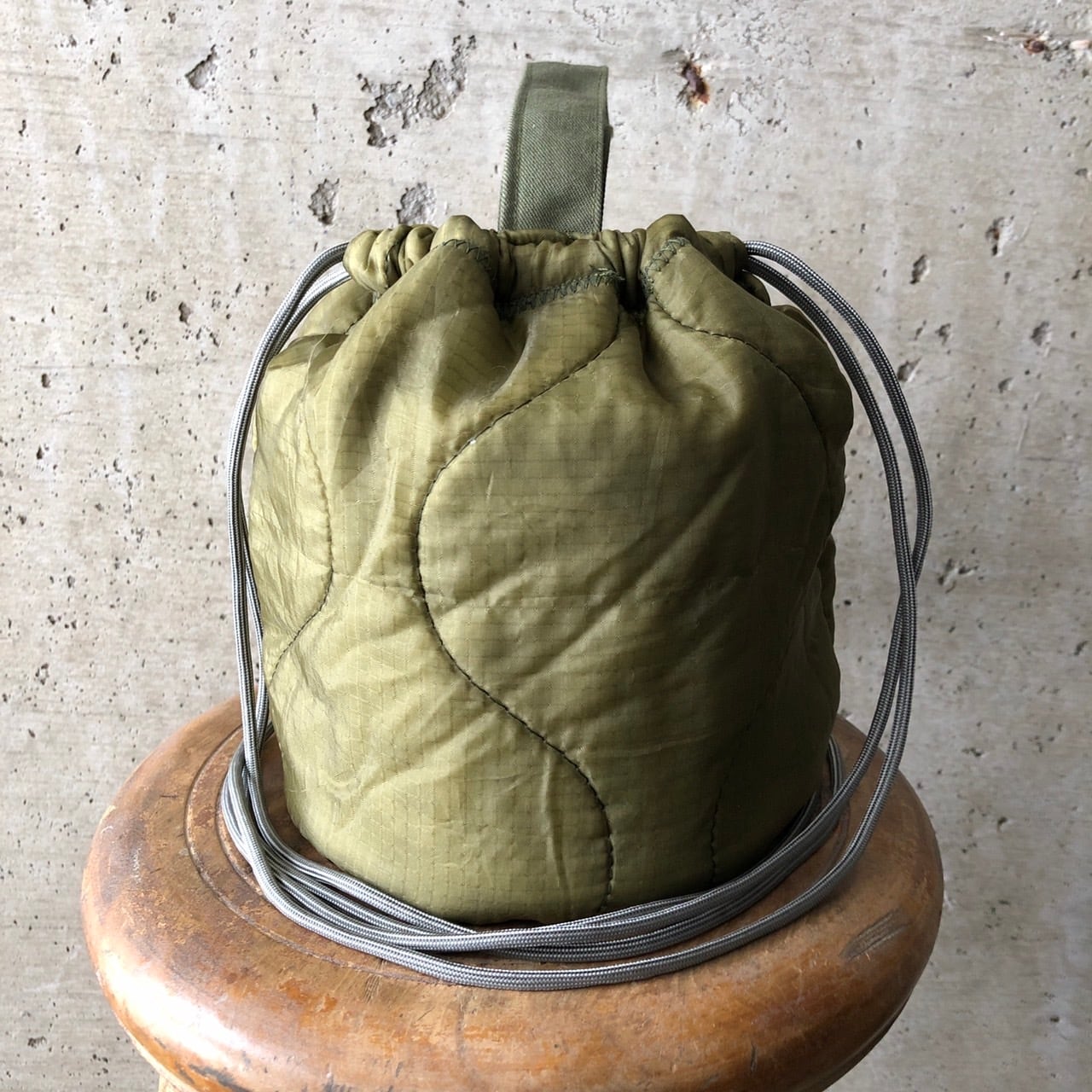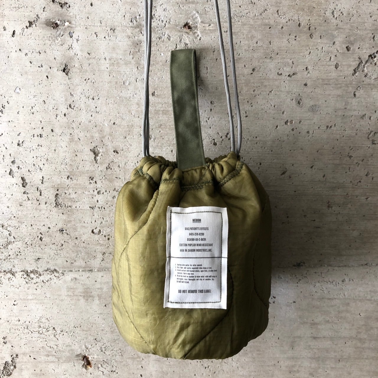 【HB1079】ショルダー ミリタリー ライナーリメイクペイシェントバッグ 巾着