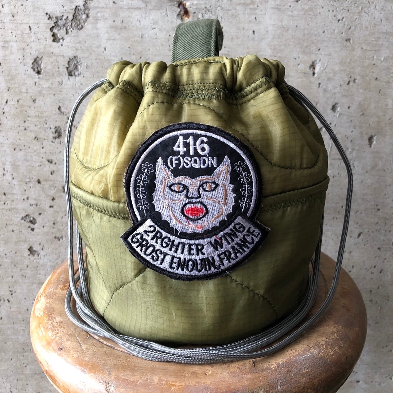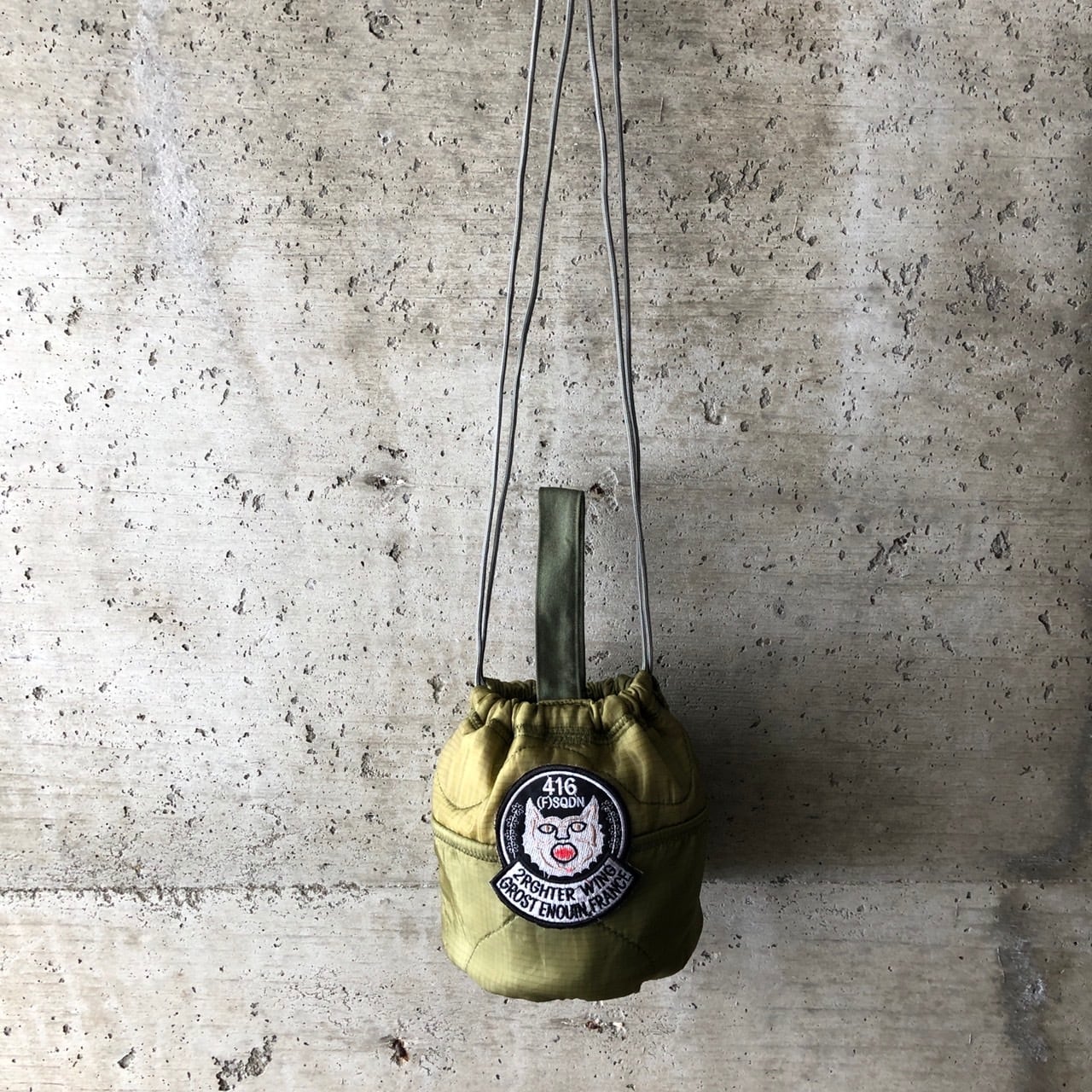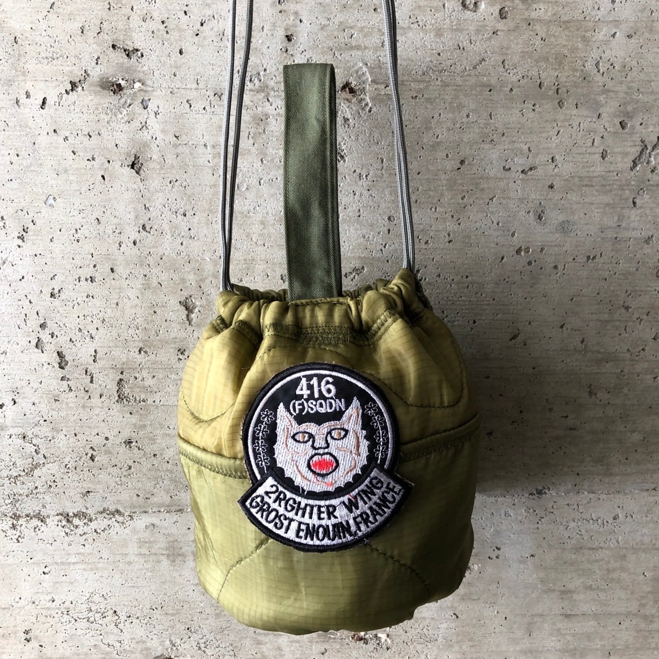 【HB1086】 ショルダー ミリタリー USA ライナーリメイク ペイシェントバッグ 巾着
