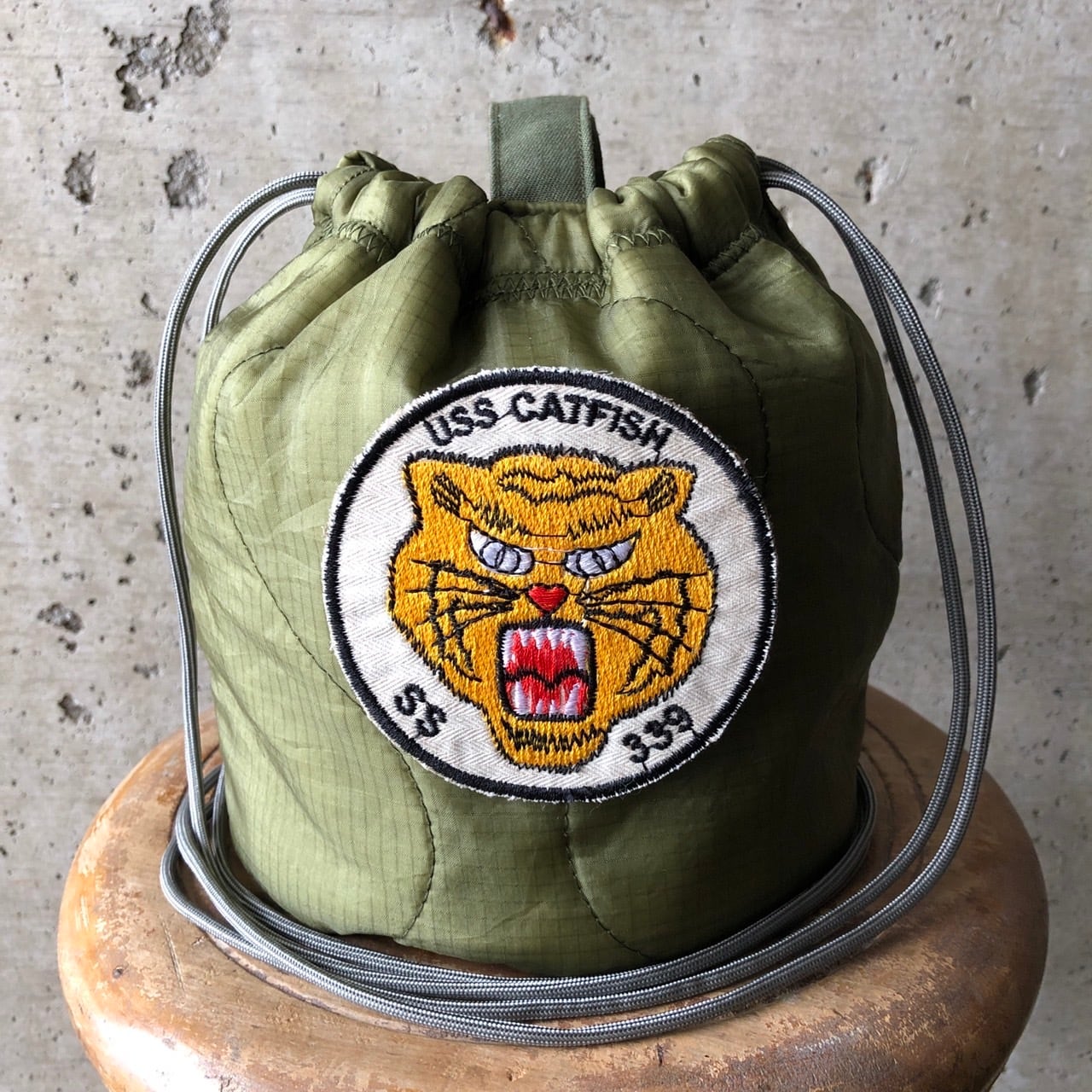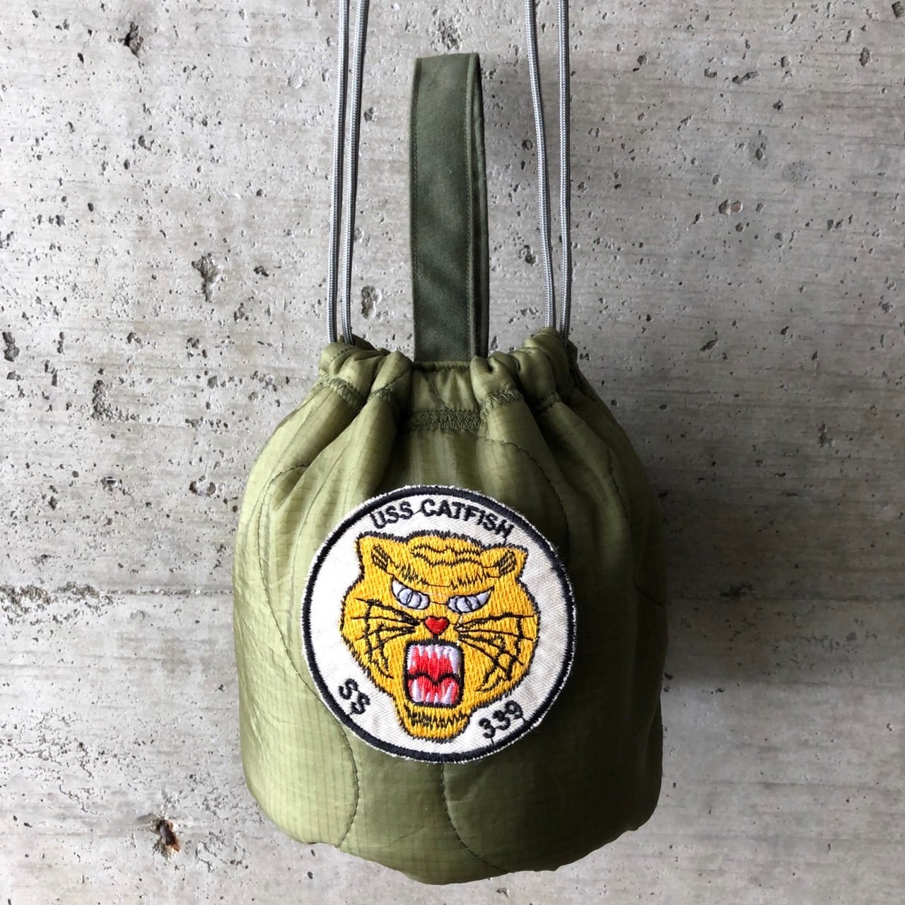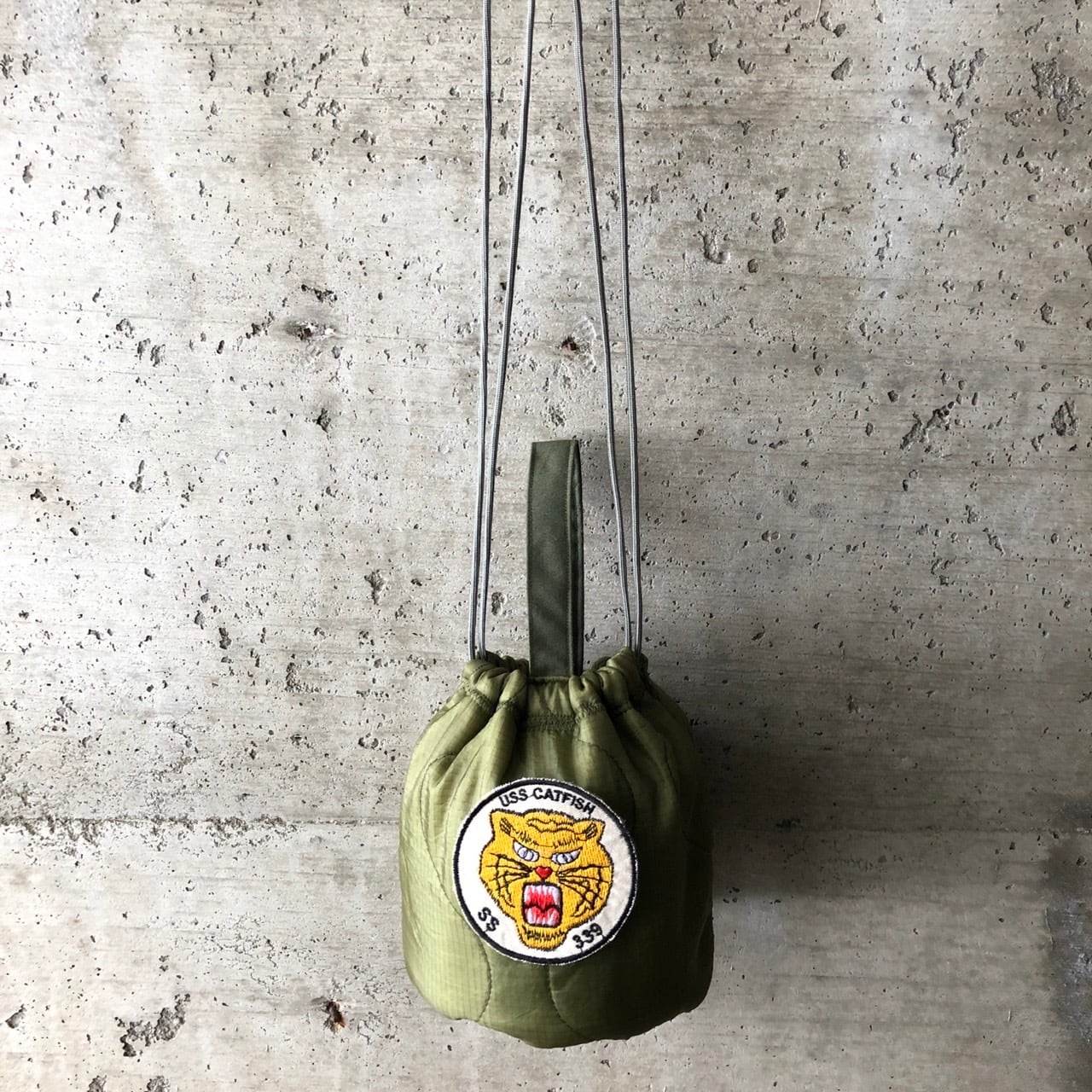 【HB1088】 ショルダー ミリタリー USA ライナーリメイク ペイシェントバッグ 巾着