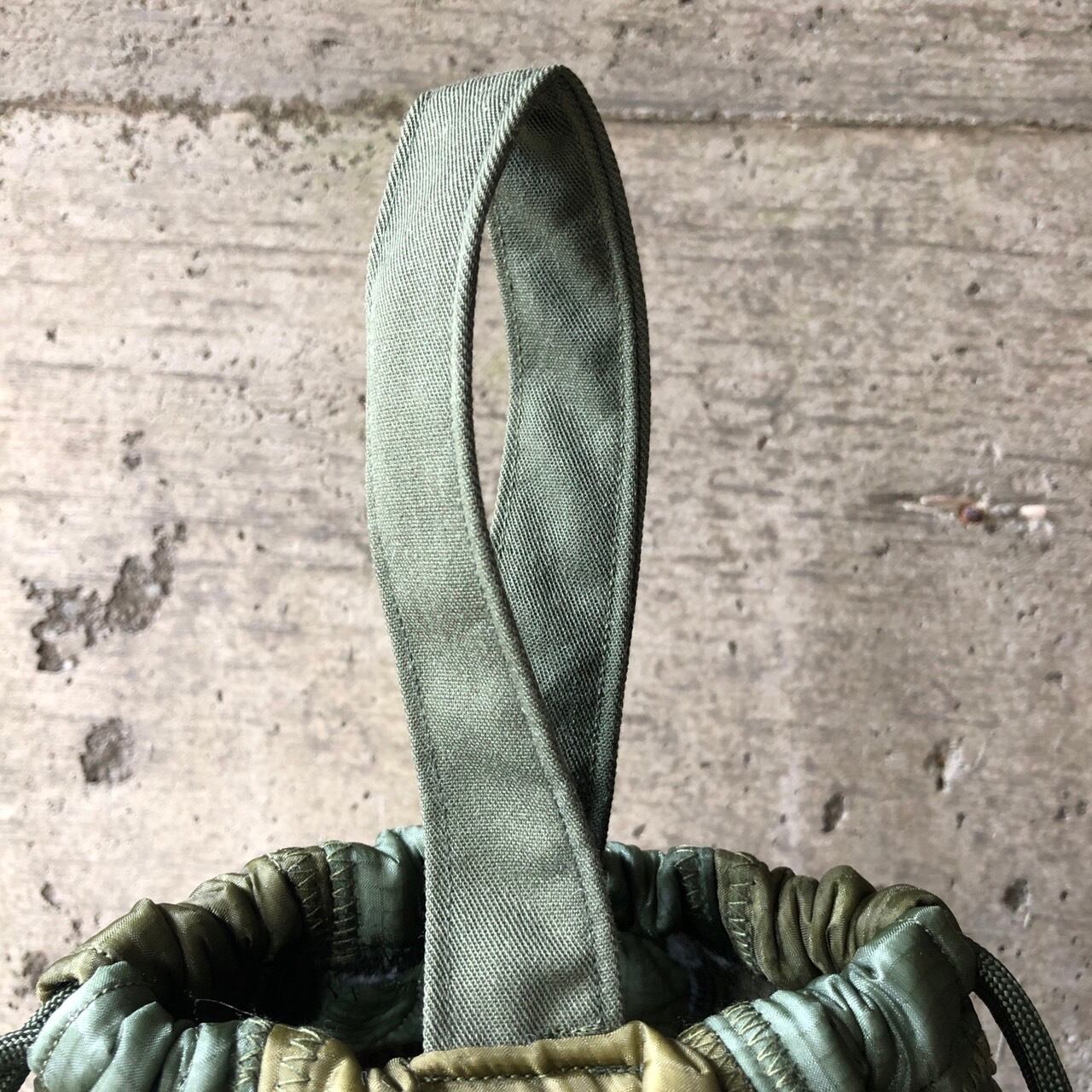 アメリカ軍のミリタリー素材(キルトライナー、コットンファティーグ)素材を使用したリメイクのペーシェントバッグポーチ