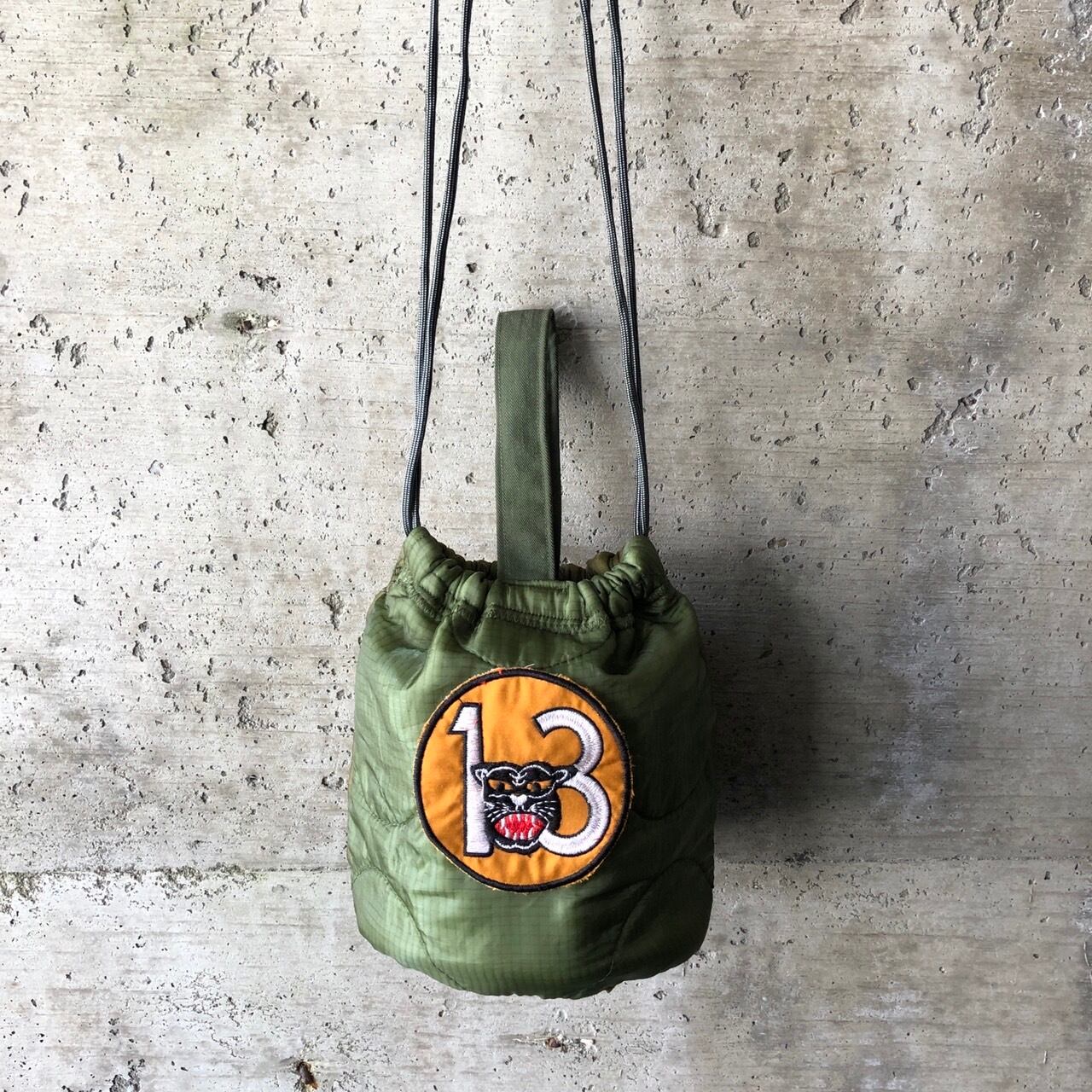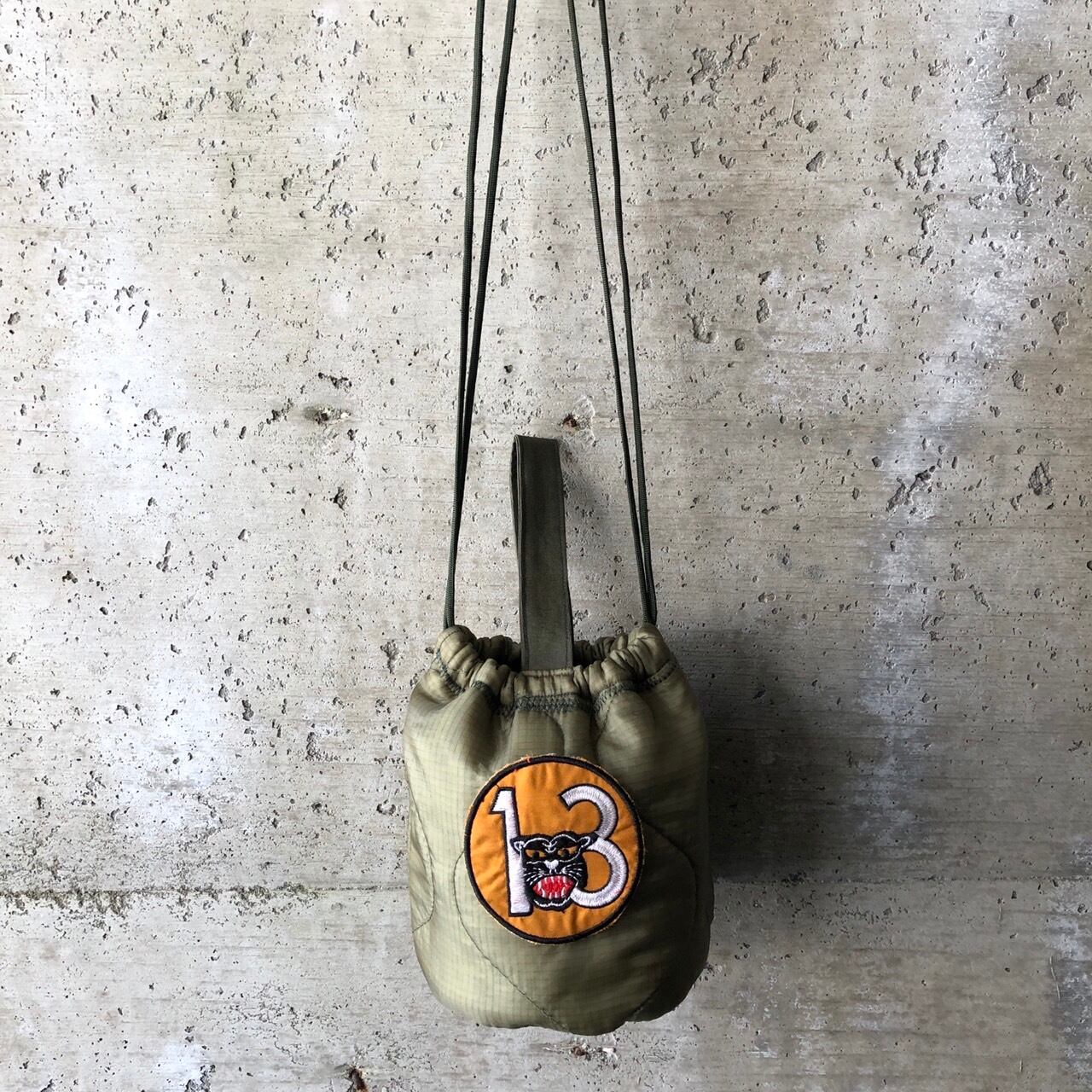 アメリカ軍のミリタリー素材(キルトライナー、コットンファティーグ)素材を使用したリメイクのペーシェントバッグポーチ