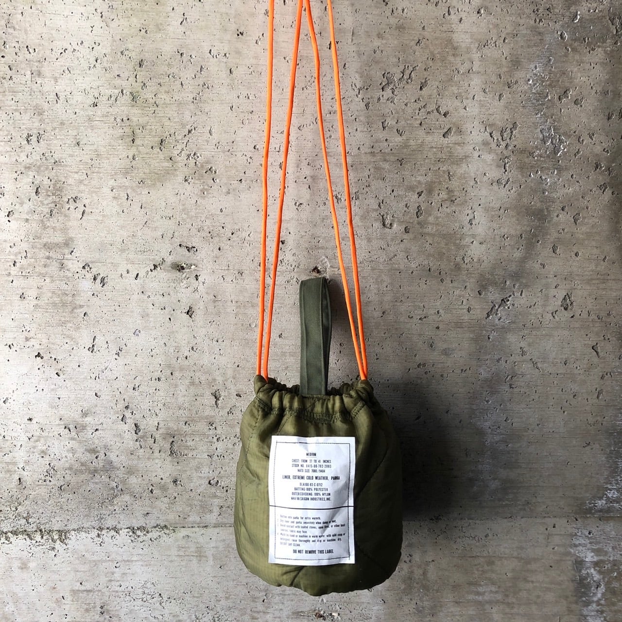 【HB1112】紐60cm ミリタリー ライナーリメイクペイシェントバッグ 巾着
