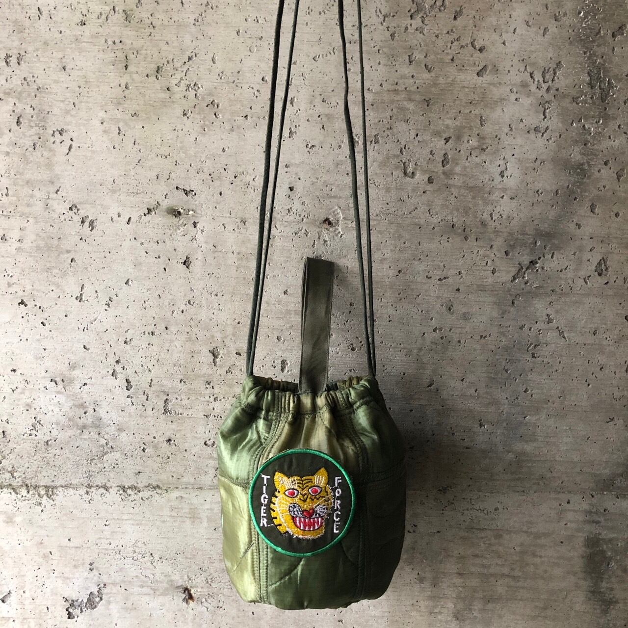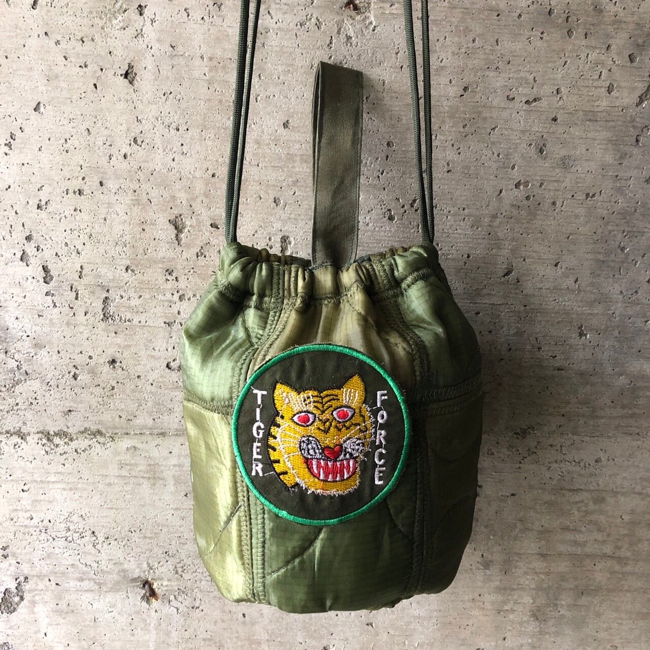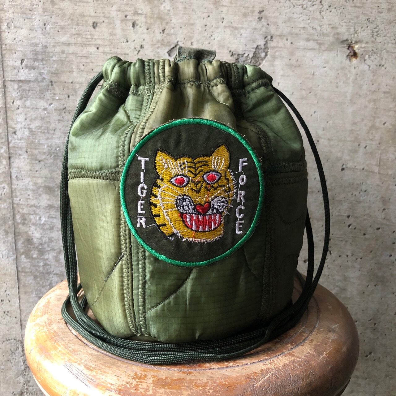 アメリカ軍のミリタリー素材(キルトライナー、コットンファティーグ)素材を使用したリメイクのペーシェントバッグポーチ