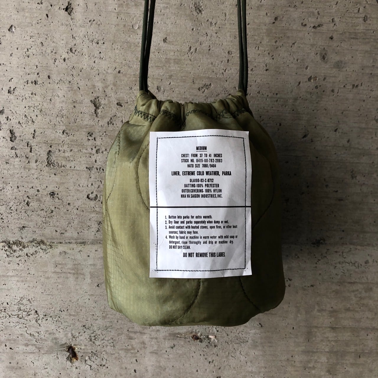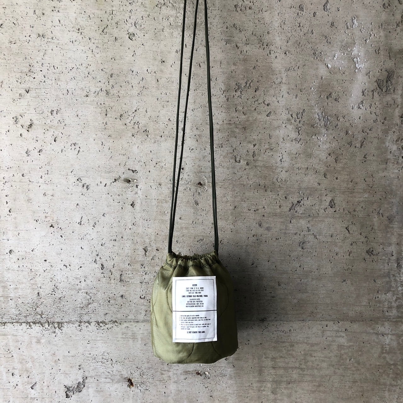 【HB1129】紐60cm ミリタリー ライナーリメイクペイシェントバッグ 巾着