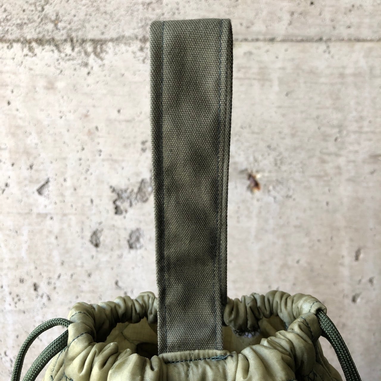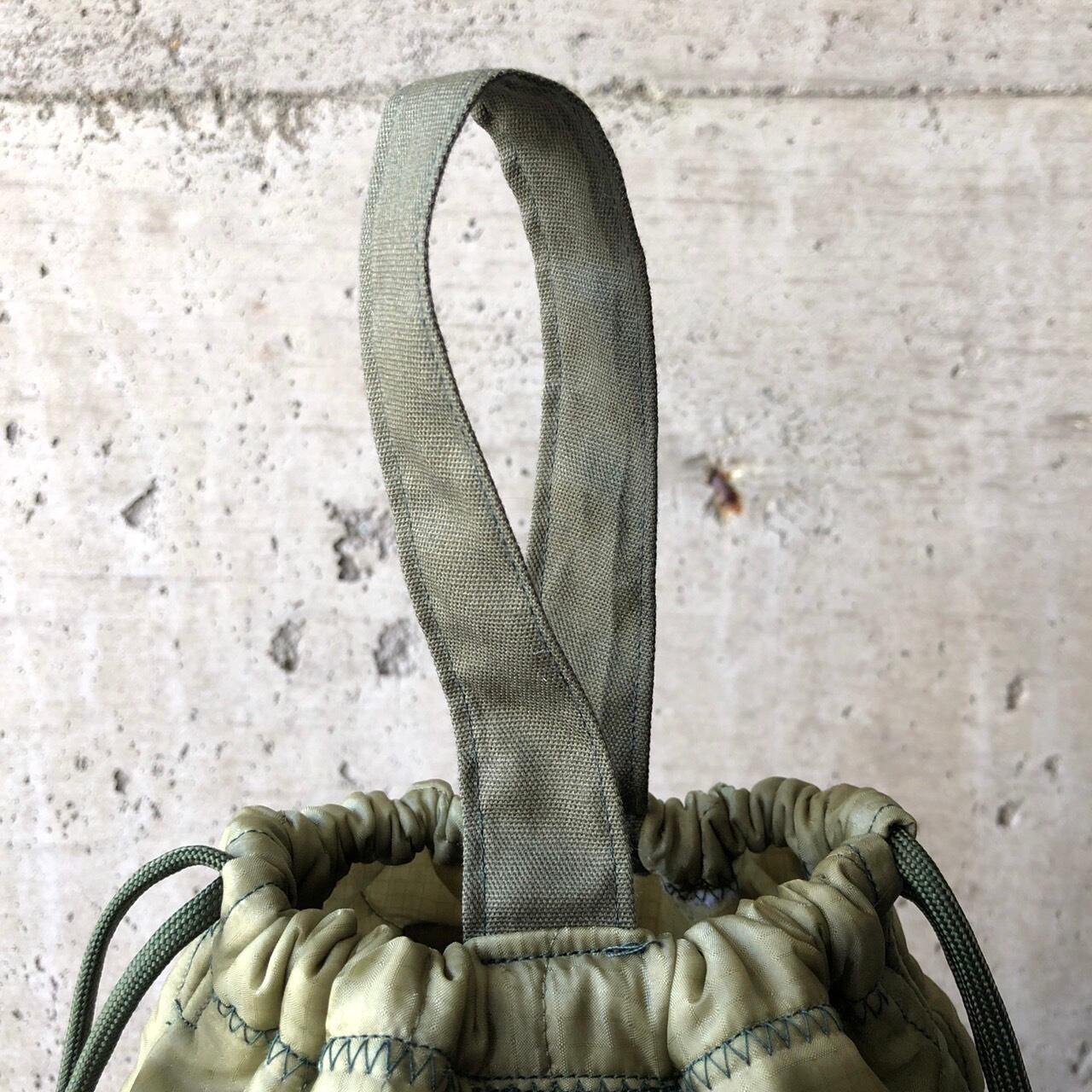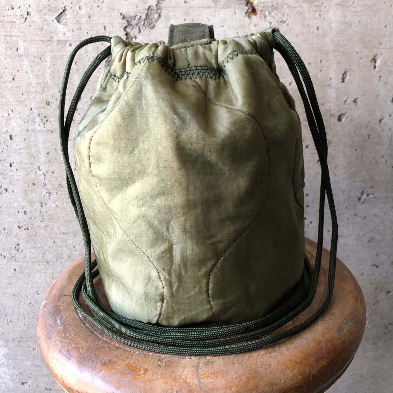 【HB1130】紐60cm 持ち手付き ミリタリー ライナーリメイクペイシェントバッグ 巾着