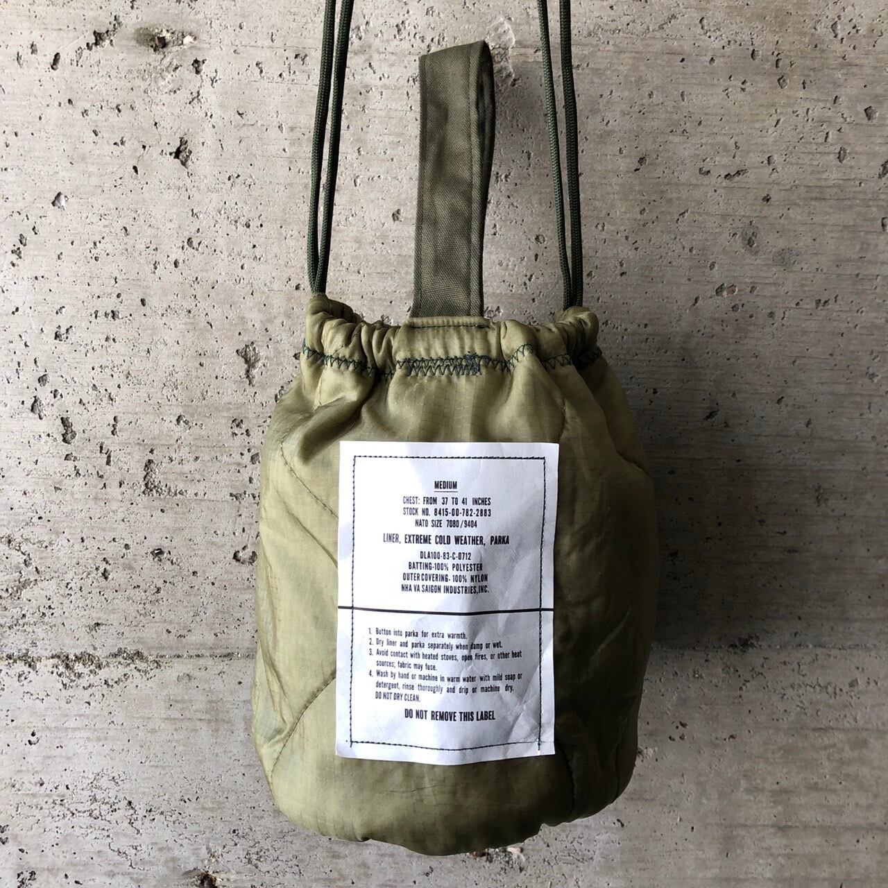 アメリカ軍のミリタリー素材(キルトライナー、コットンファティーグ)素材を使用したリメイクのペーシェントバッグポーチ