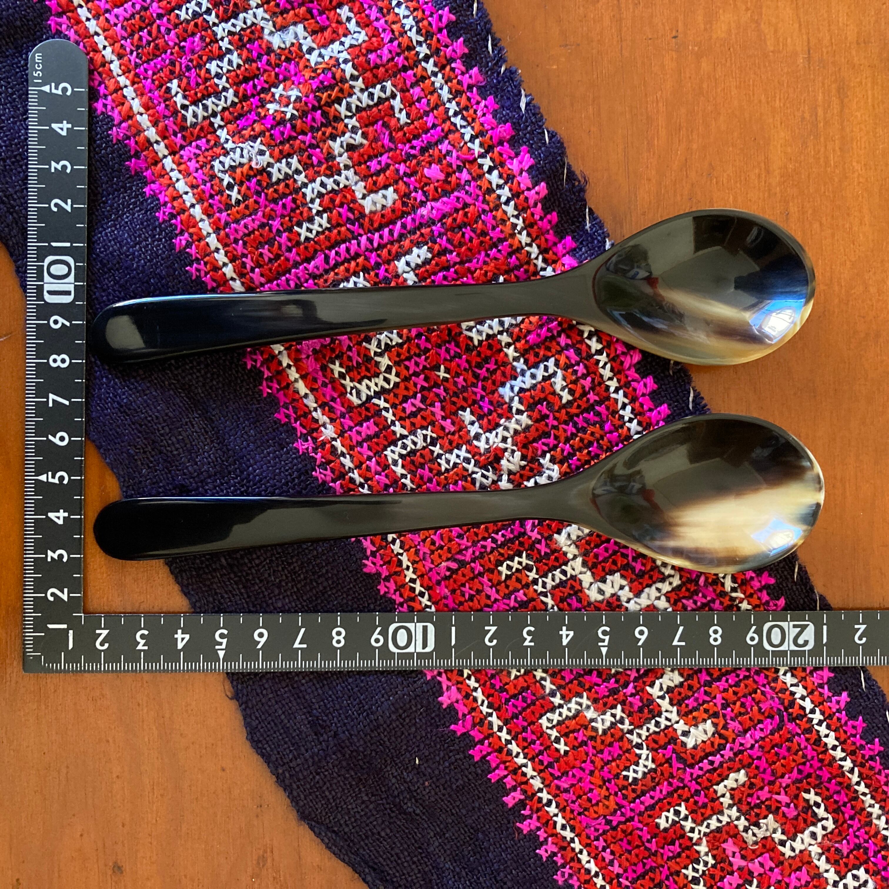 【水牛の角スプーン】 バッファローホーンカトラリー デザートスプーン ロングスプーン 黒色系