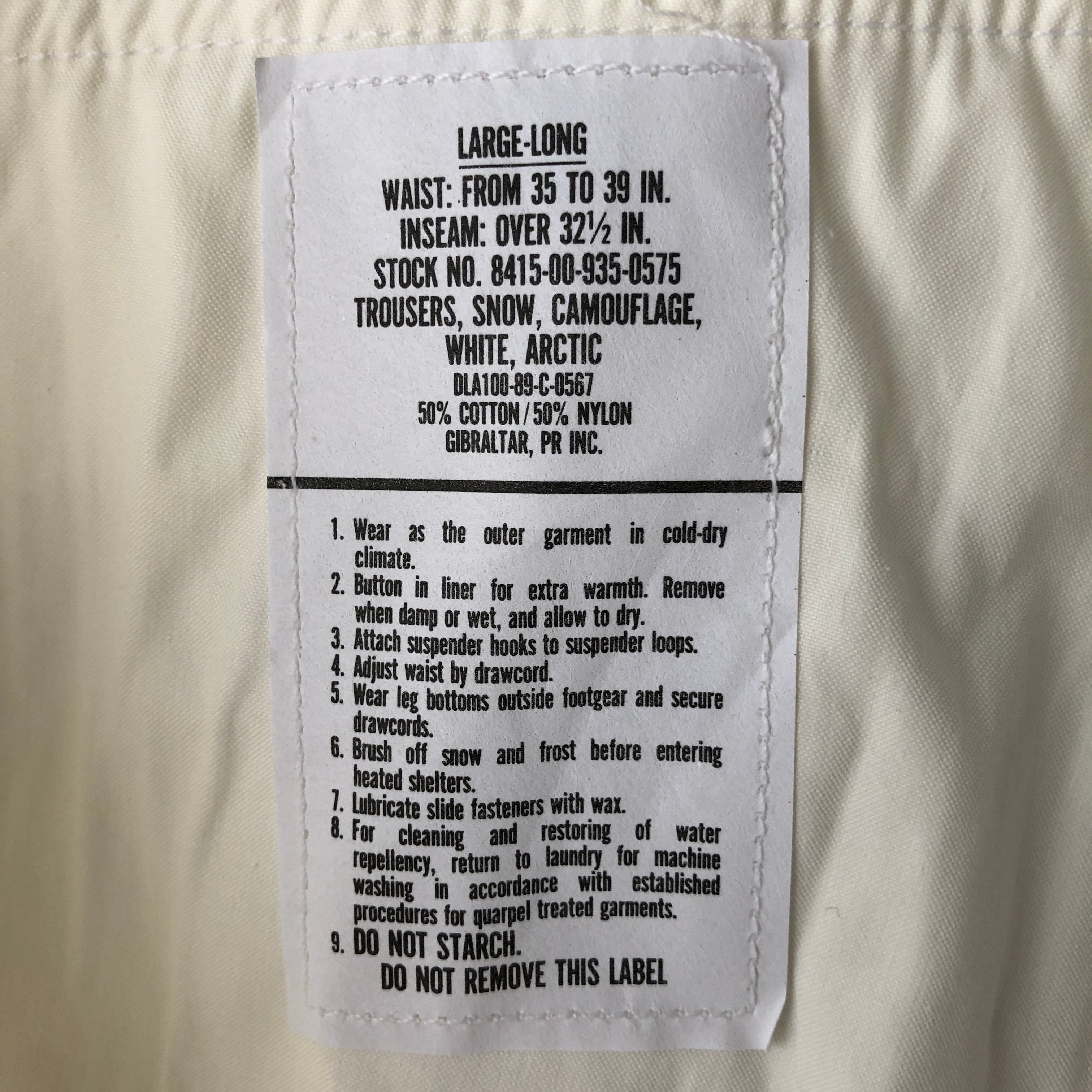 【米軍実物】US.Army SNOW CAMO PANTS アメリカ軍 スノーカモ パンツ L/L 89年