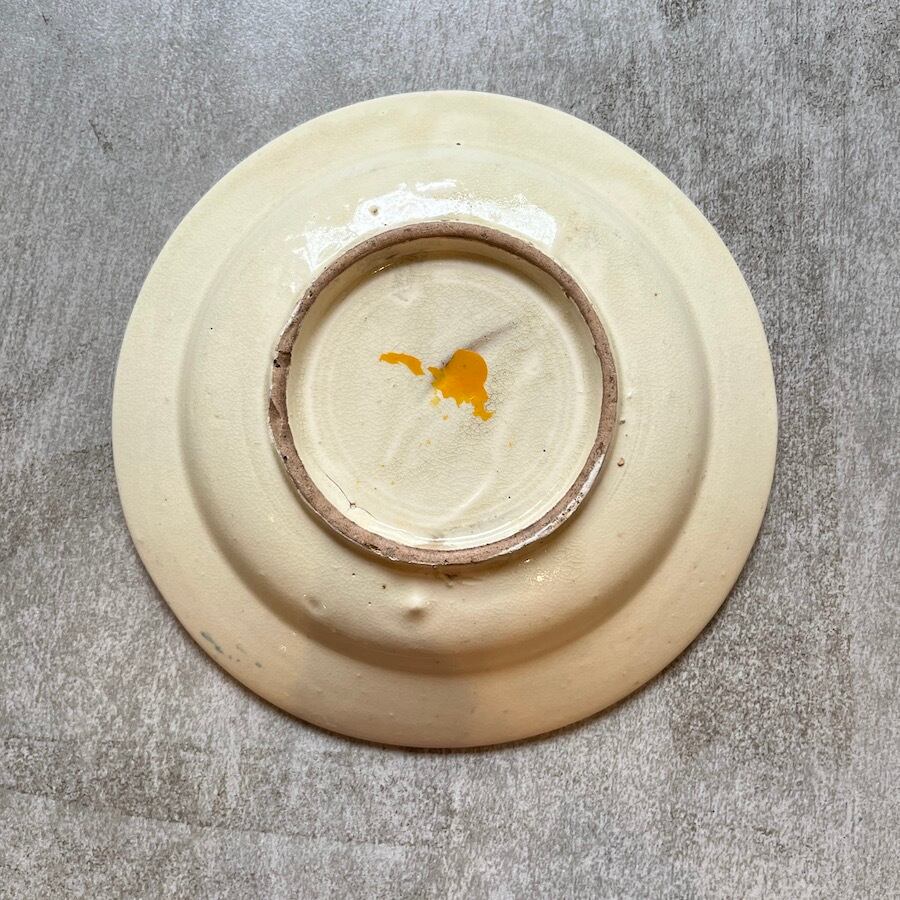 ソンべ焼きは窯の中で重ねて焼くため、ぽつぽつとあとが残り、ひびや歪みがあるのが特徴です。