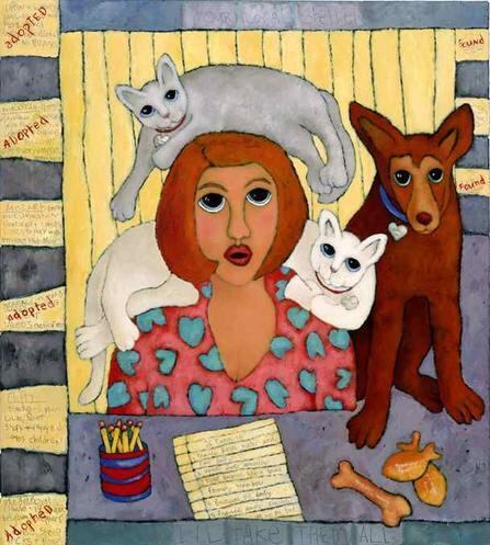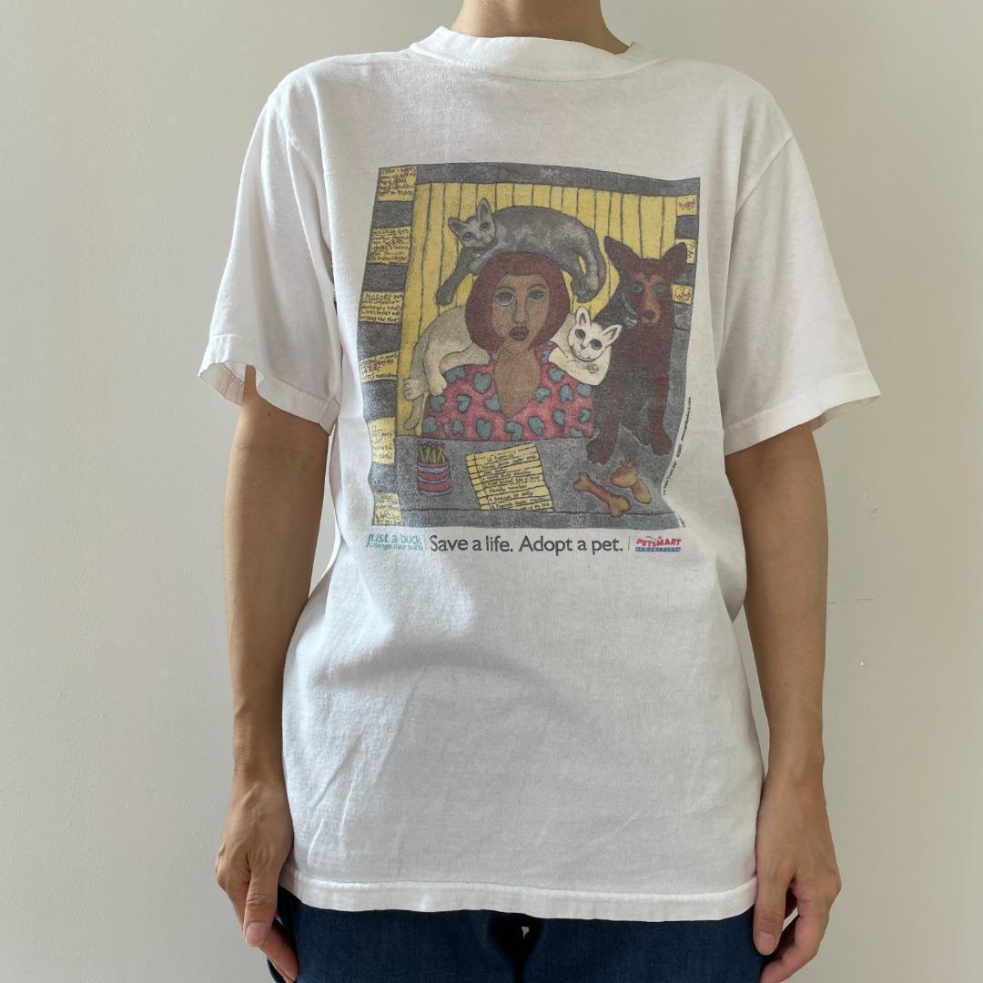 GF556 Tシャツ 00s アートT 絵画 犬 猫 アーティスト 動物 ネコ