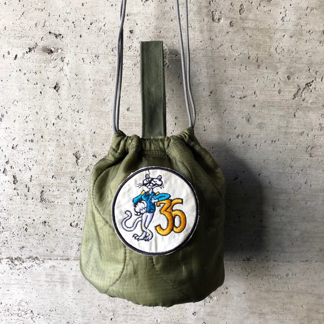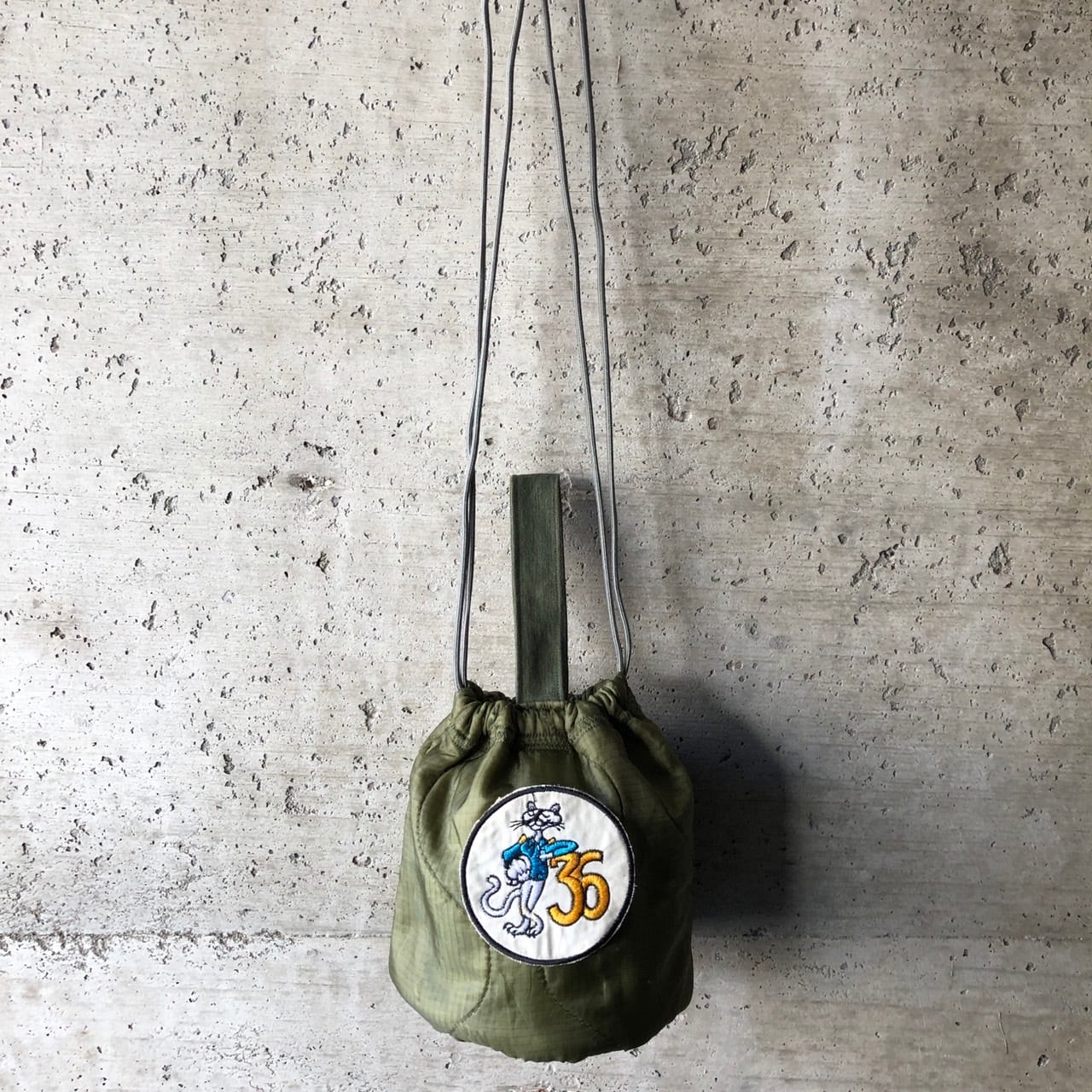 【HB1066】 ショルダー ミリタリー USA ライナーリメイク ペイシェントバッグ 巾着